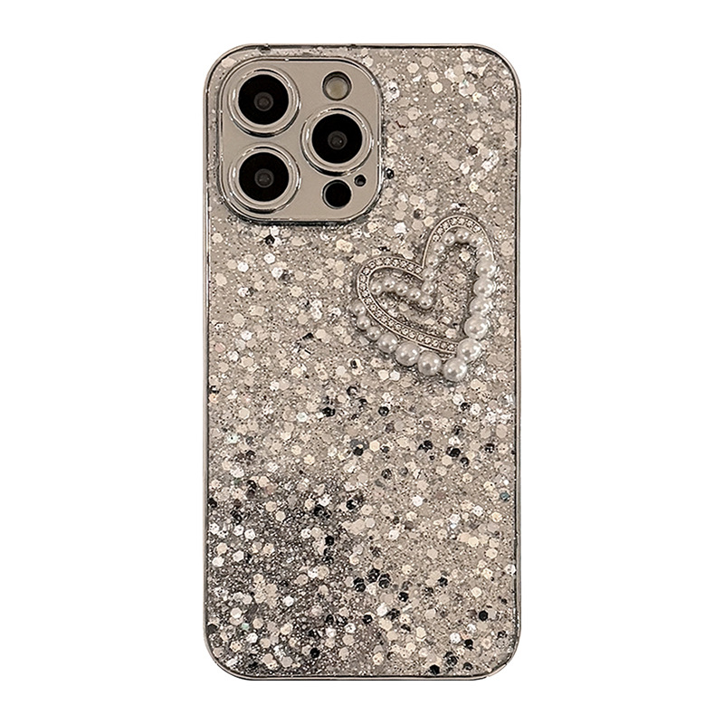 奢华闪粉珍珠爱心适用iPhone15promax手机壳苹果14气质13滴胶16硬