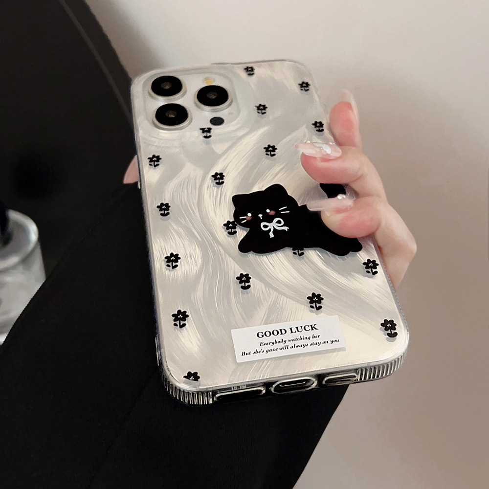 ins郁金香猫咪手机壳适用14苹果15pro max羽纱iphone13甜酷16镭射