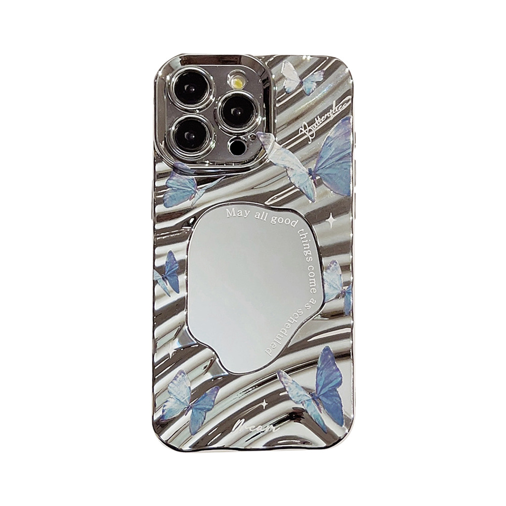电镀蓝色蝴蝶iPhone15promax苹果14手机壳11镜面13高级感16气质硬