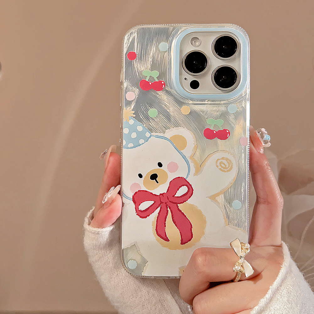 可爱彩色波点小熊手机壳适用14苹果15羽纱iphone13promax趣味16硬