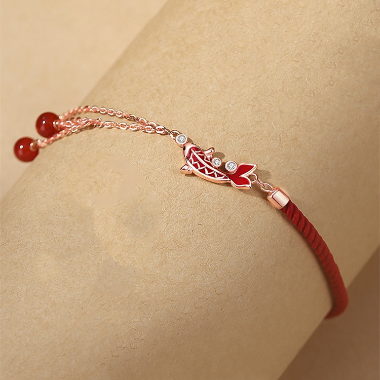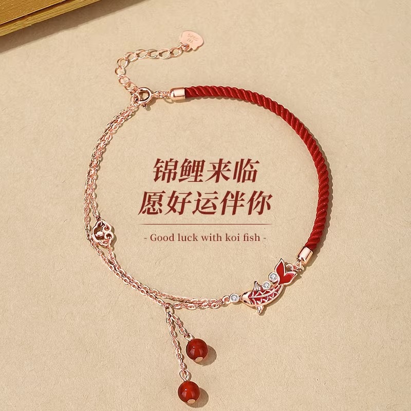 新款锦鲤上岸脚链女好运红绳喜庆饰品女生高级感本命年潮流足链
