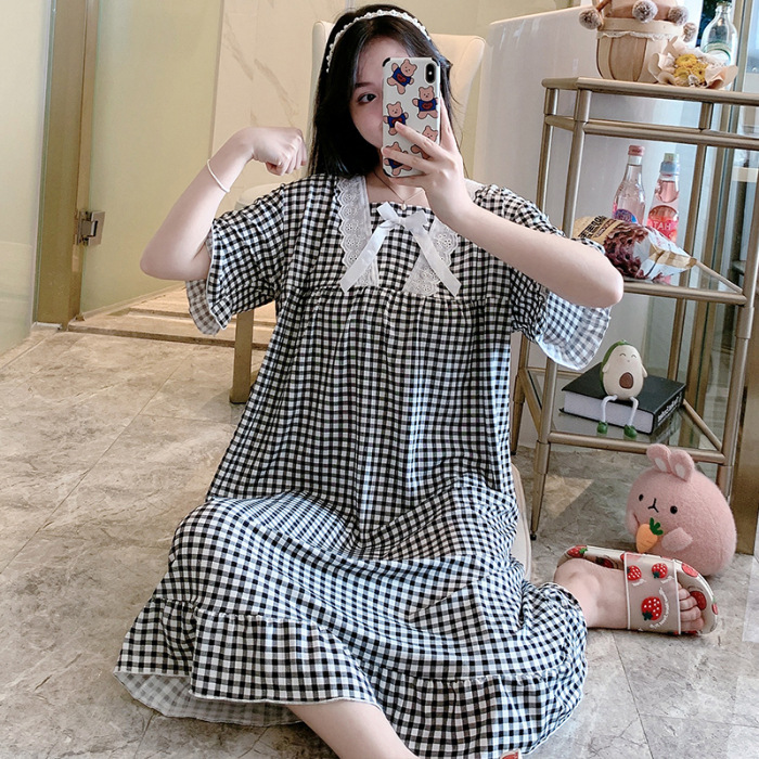 - zd-634#睡裙 黑格子