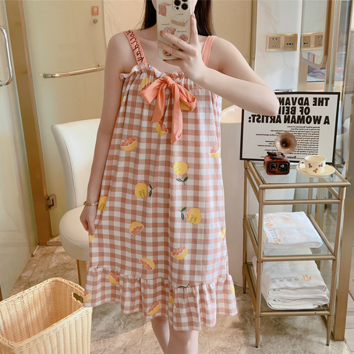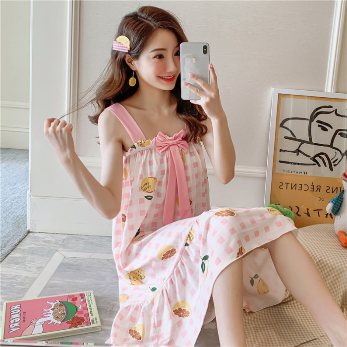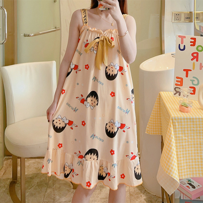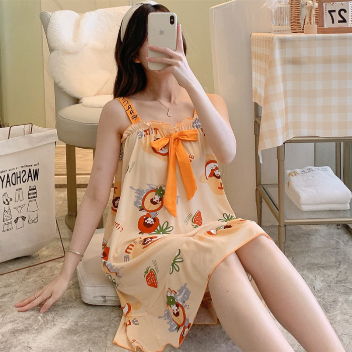 睡裙女夏季韩版性感睡衣女中长款短袖露肩吊带裙可外穿宽松连衣裙