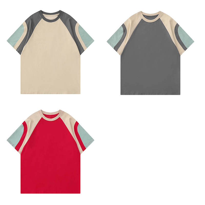 A39#(21支超爽棉220克索罗娜螺纹)纯棉插肩撞色光版短袖T恤跨境
