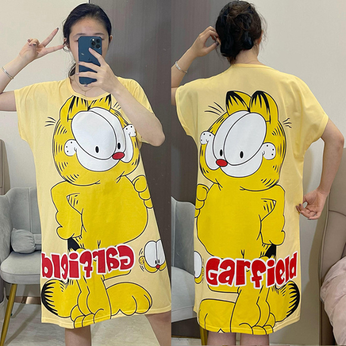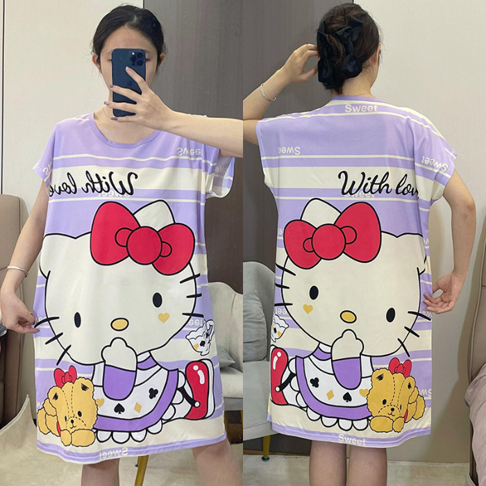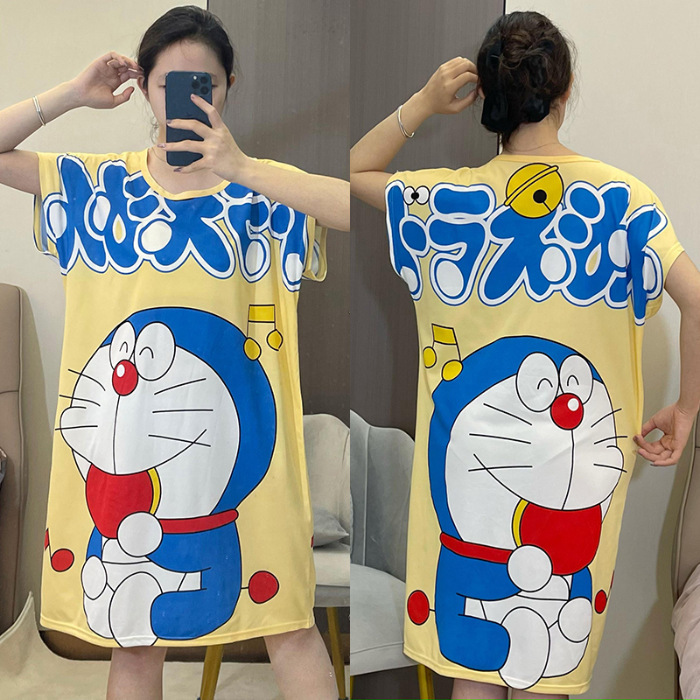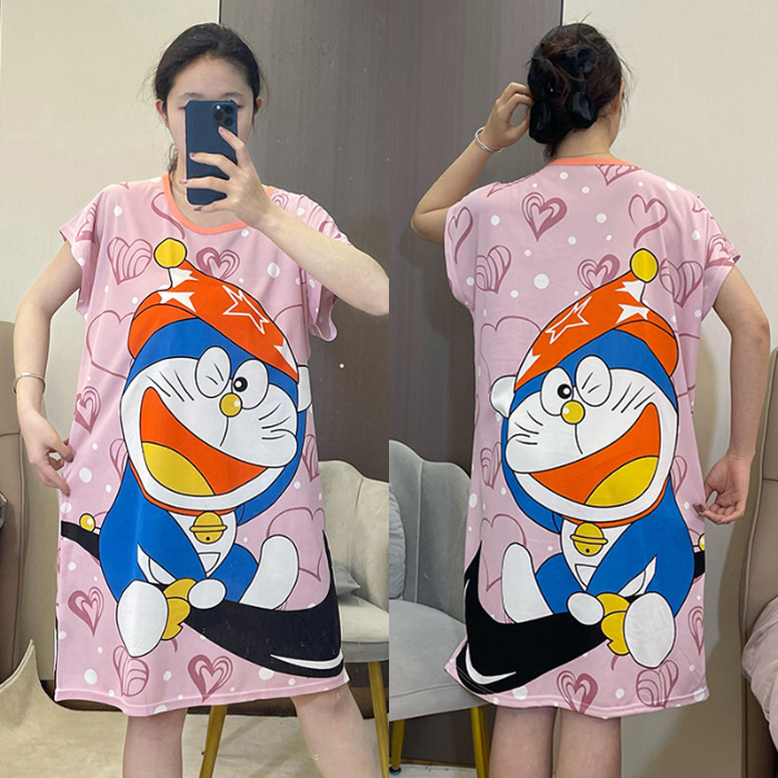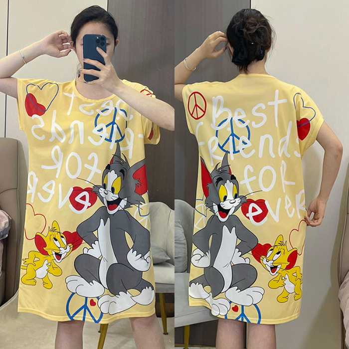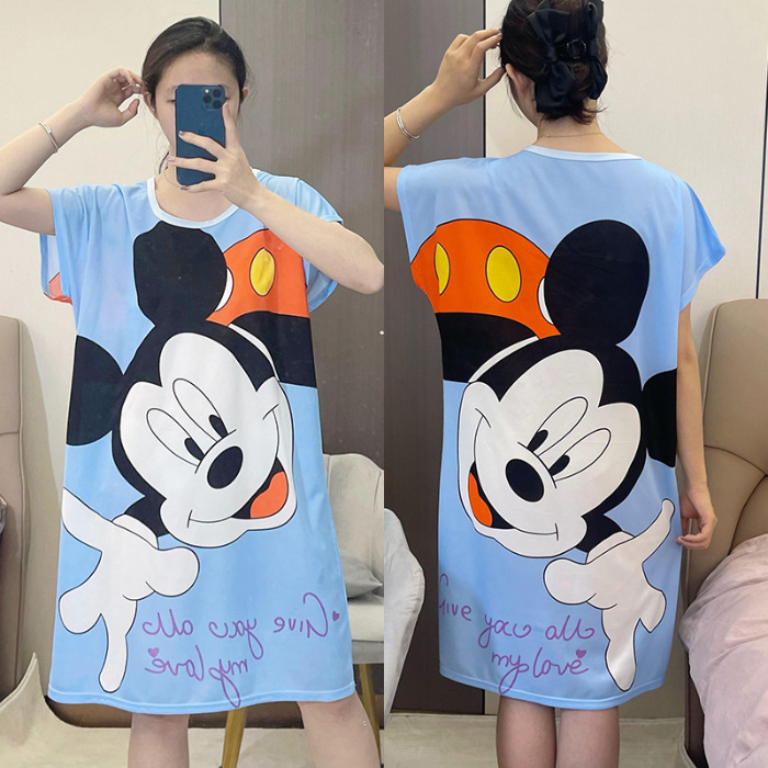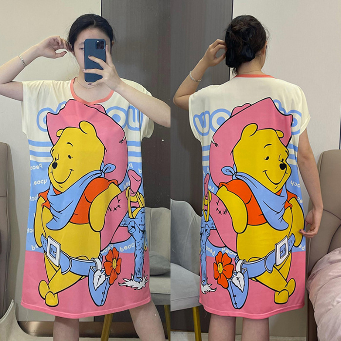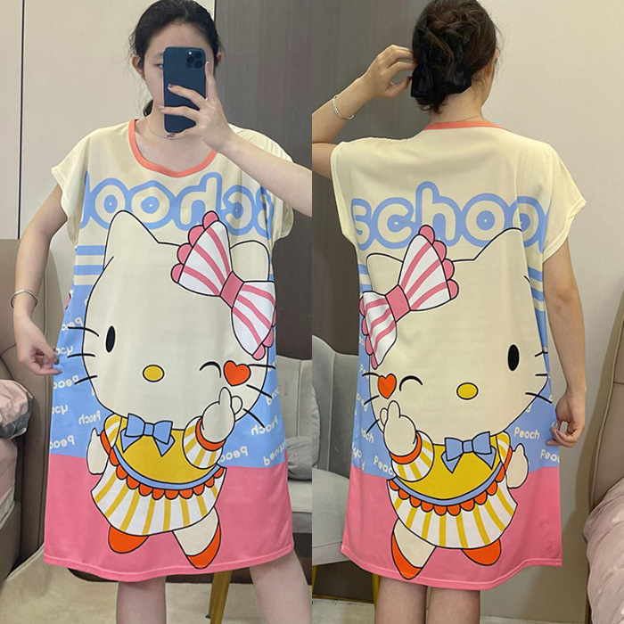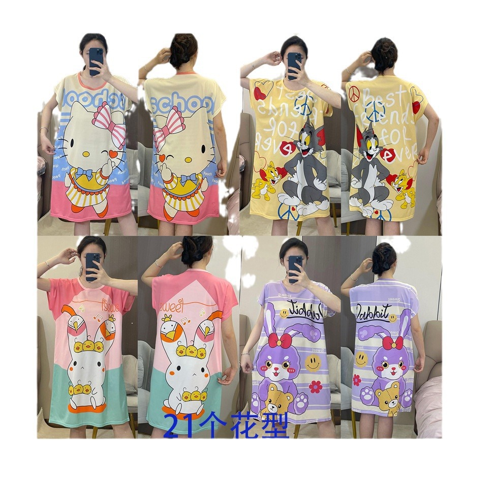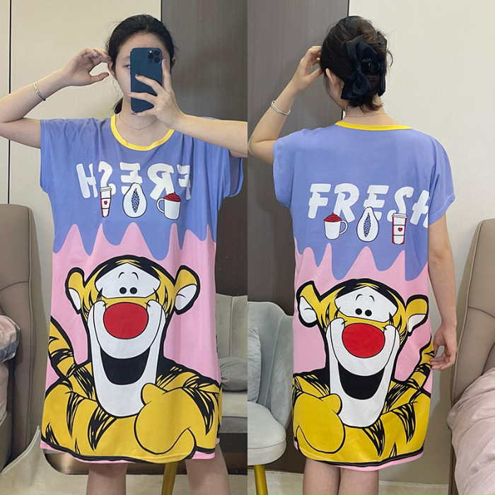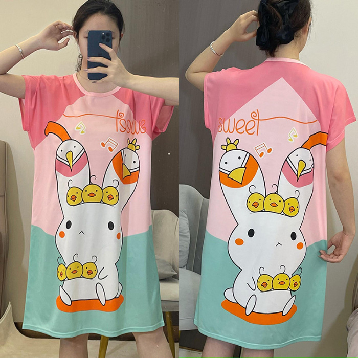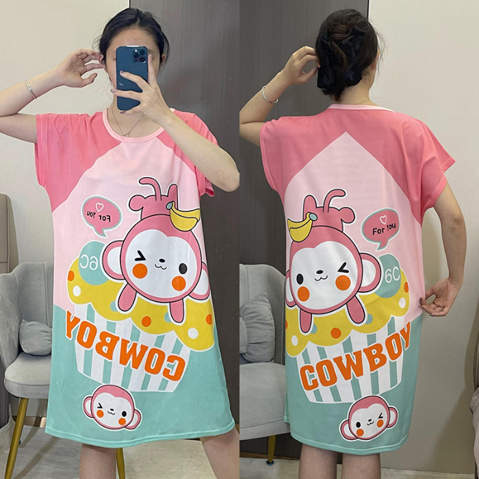 新品ins韩版夏季牛奶丝短袖睡裙女可爱卡通圆领套头薄款多款少女