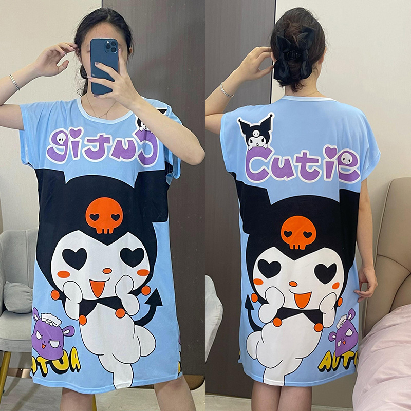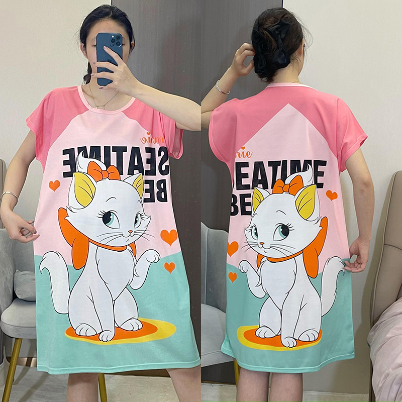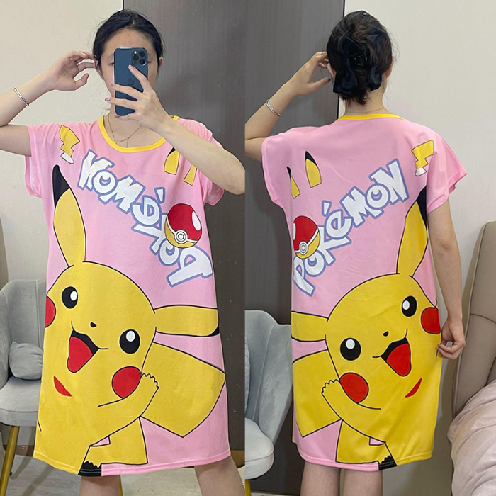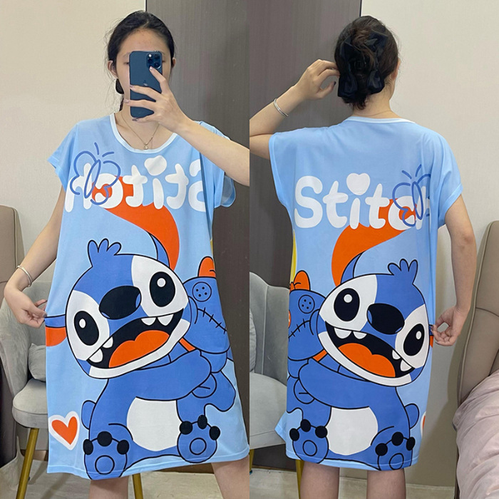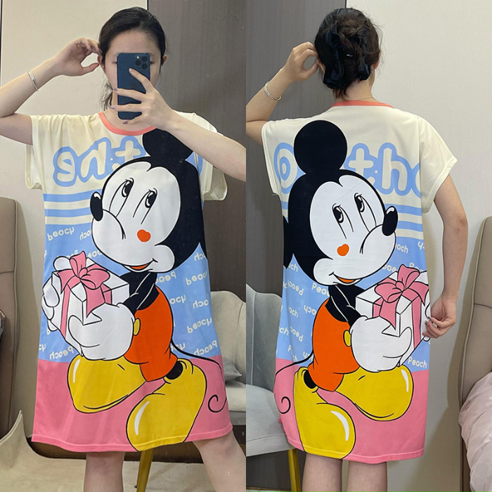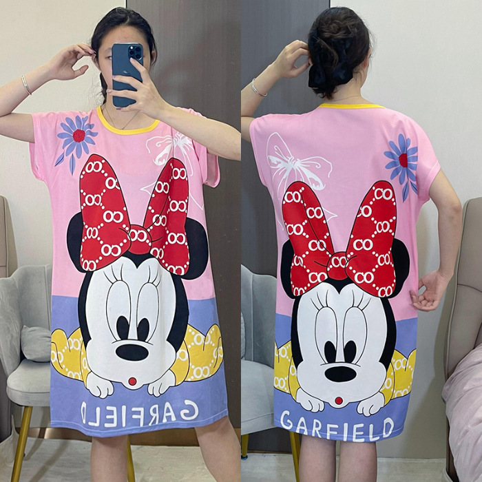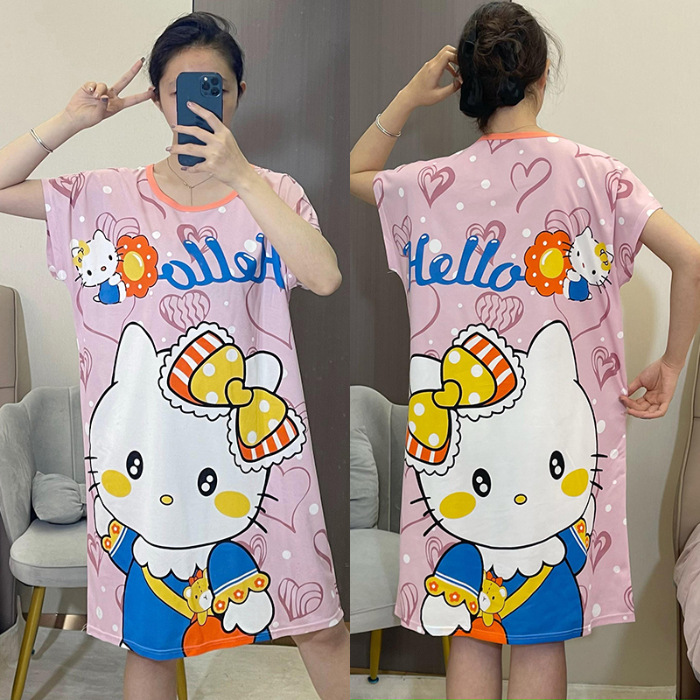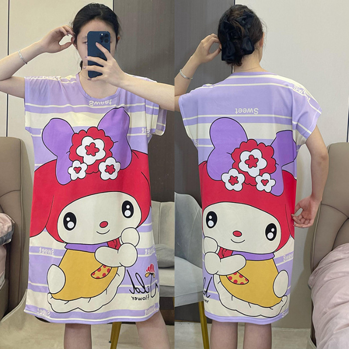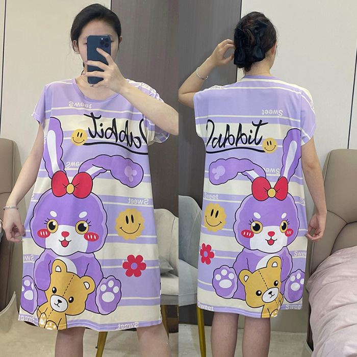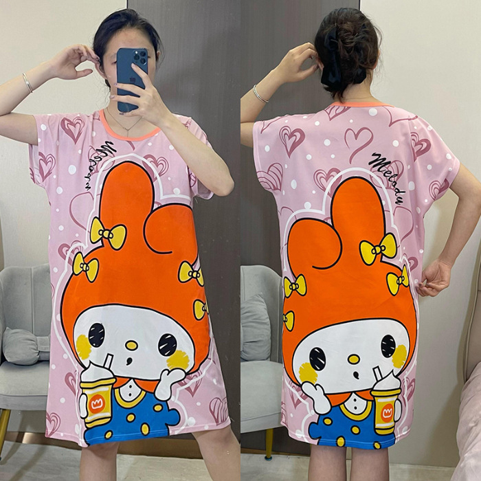 新品ins韩版夏季牛奶丝短袖睡裙女可爱卡通圆领套头薄款多款少女
