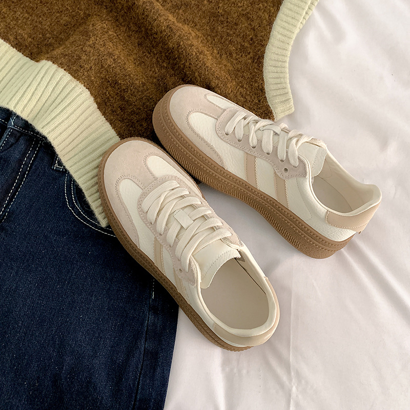 真皮德训鞋春夏新款休闲板鞋厚底运动小白鞋女复古阿甘鞋单鞋