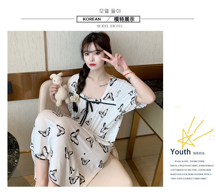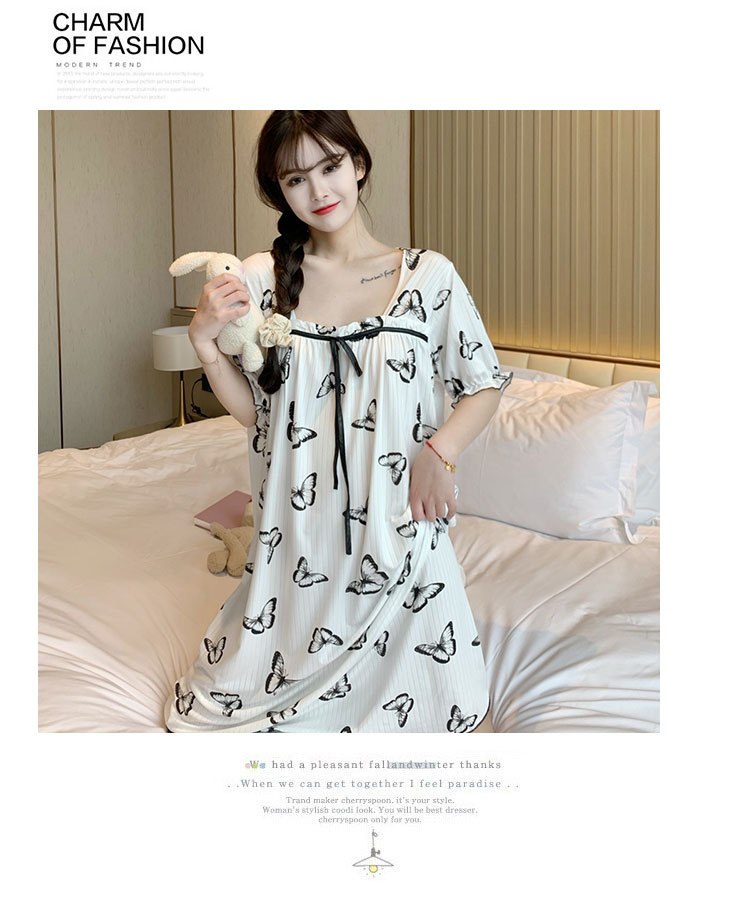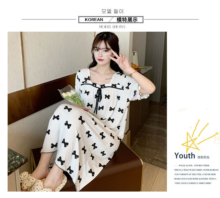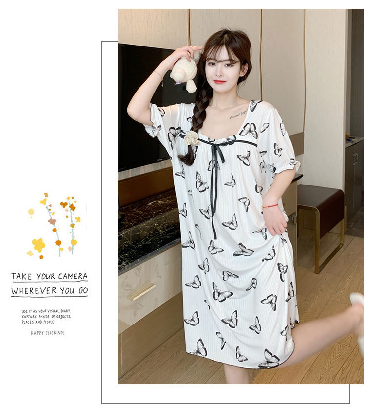 新品夏季新款牛奶丝坑条短袖加肥休闲宽松睡裙家居服裙