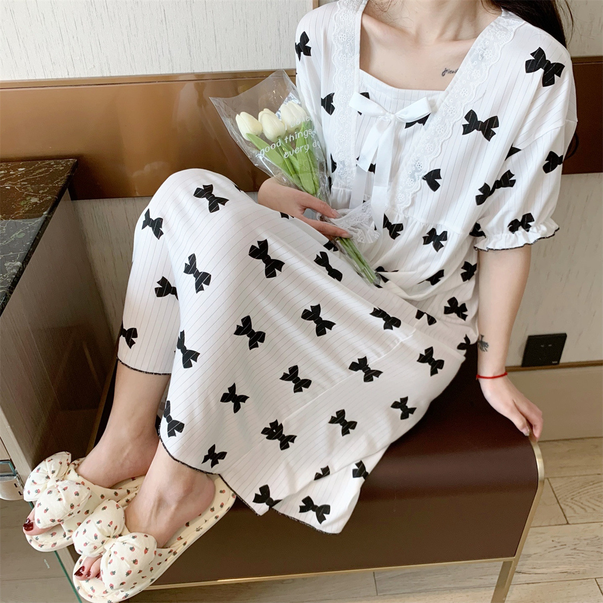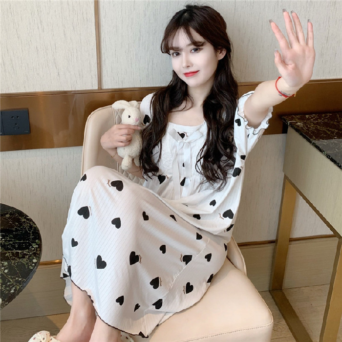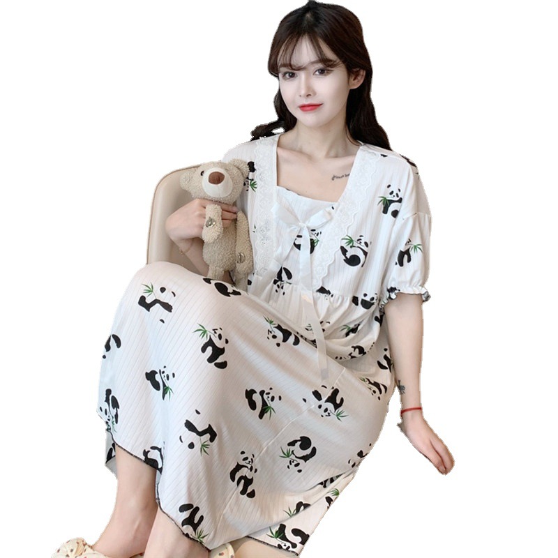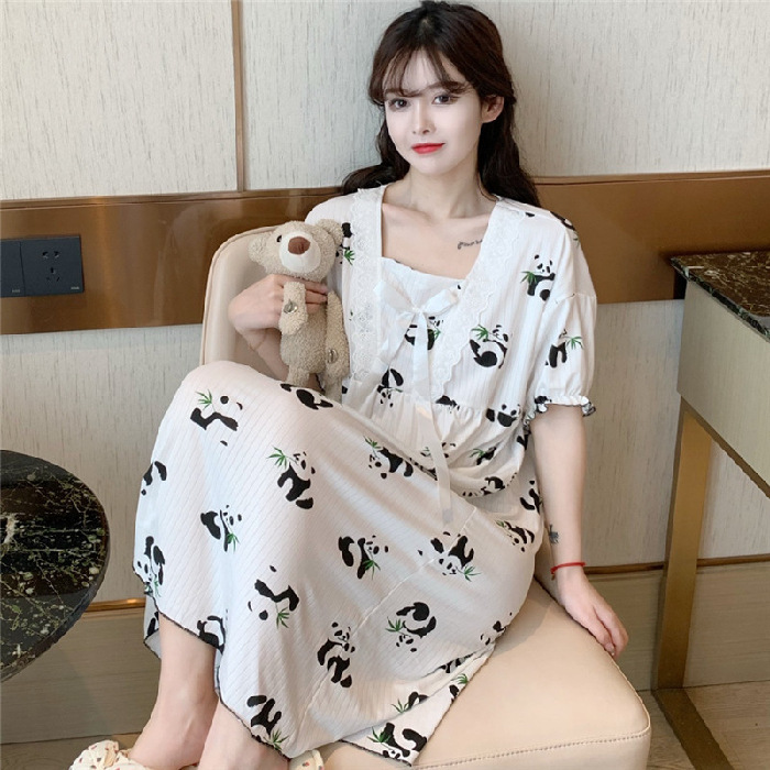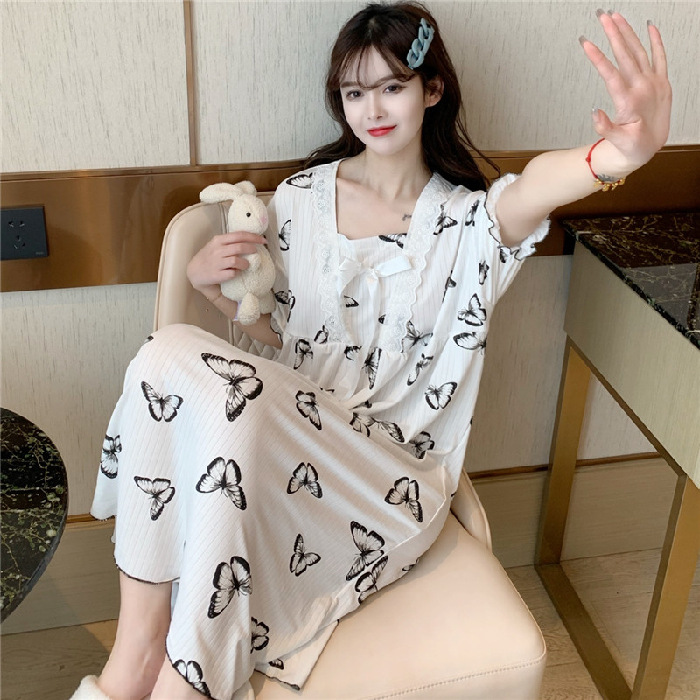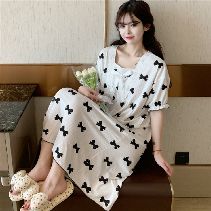 新品夏季新款一字领坑条短袖加肥休闲宽松睡裙家居服裙