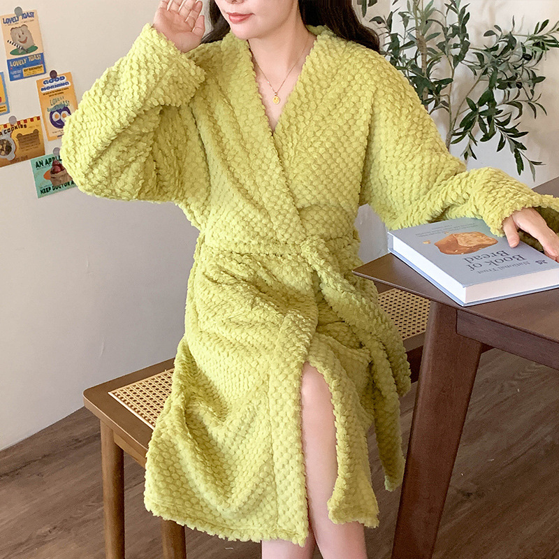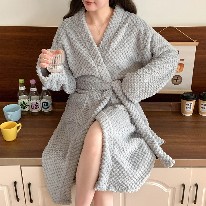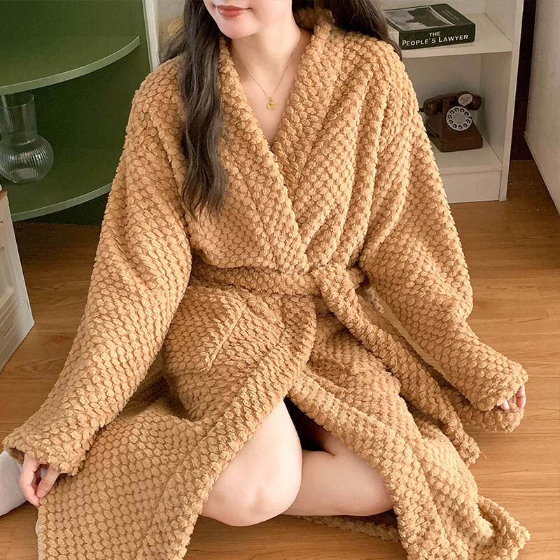 新品年冬季睡袍 实拍260克法兰绒玫瑰绒睡衣宽松长款加厚女士