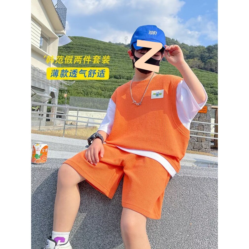 男童夏装套装新款夏季薄款短袖运动服儿童帅气中大童两件套潮
