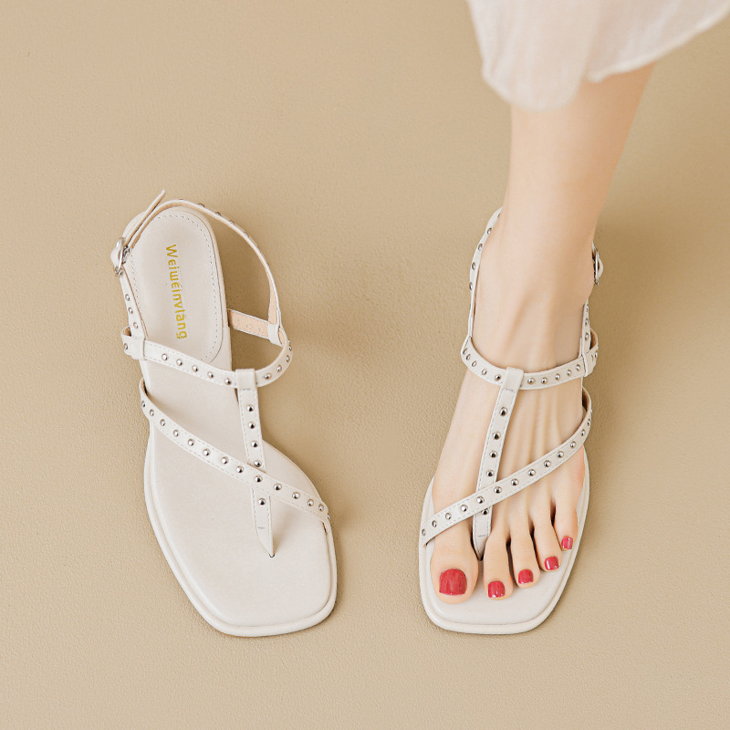 威威女郎 2067-8法式粗跟凉鞋女外穿一字带气质高跟鞋女大码