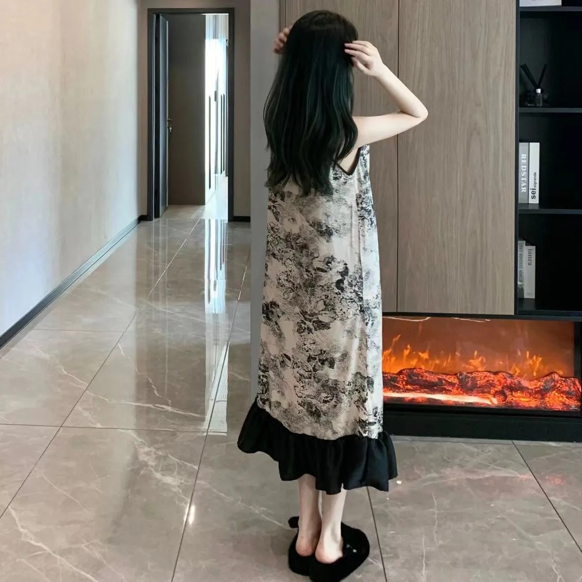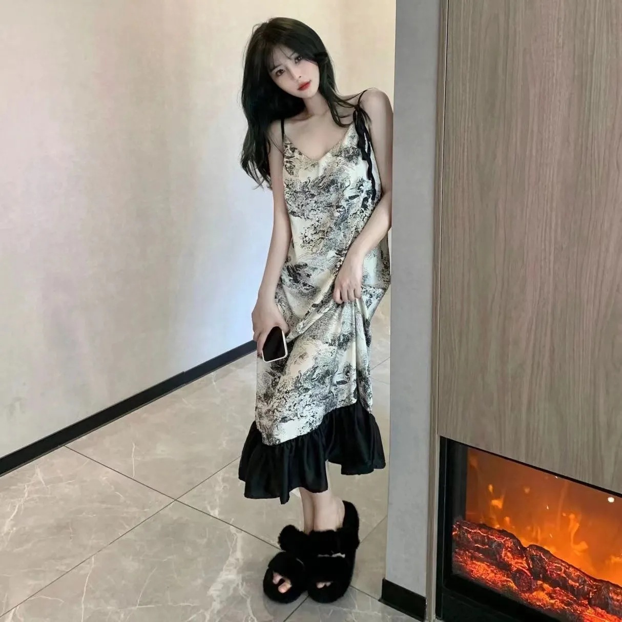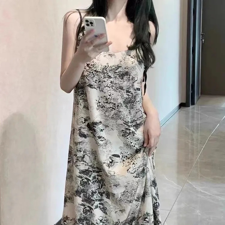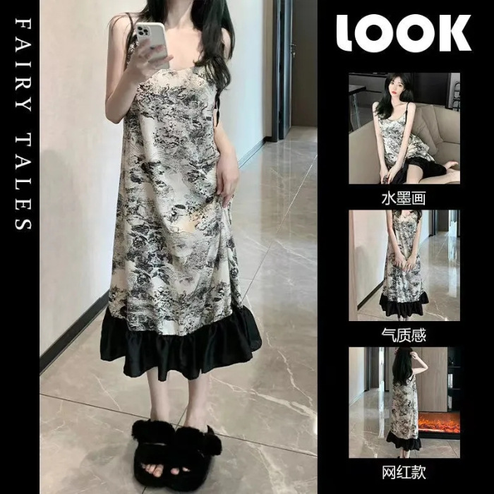 韩版新款ins风高级国风睡衣女夏薄款单棉牛奶丝气质吊带睡裙