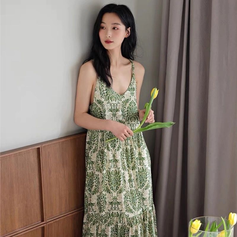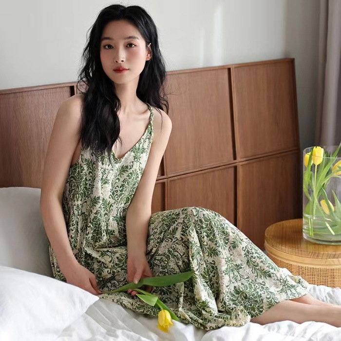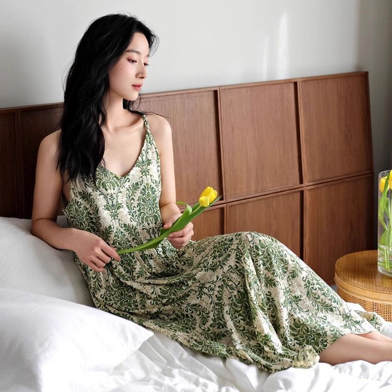 薄荷曼波吊带睡裙女士款夏季仿棉睡衣大码可外穿带胸垫夏天连衣裙
