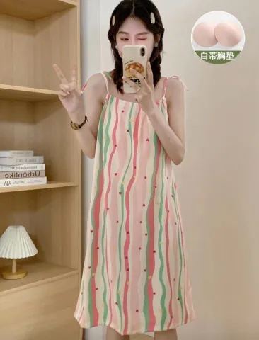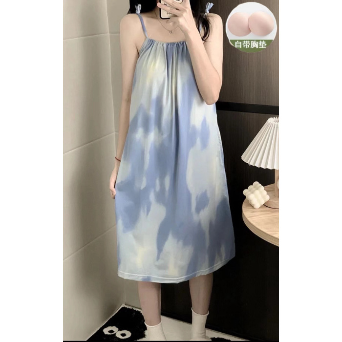 吊带睡裙女夏季薄款带胸垫甜美少女年轻高级感公主气质居家睡衣