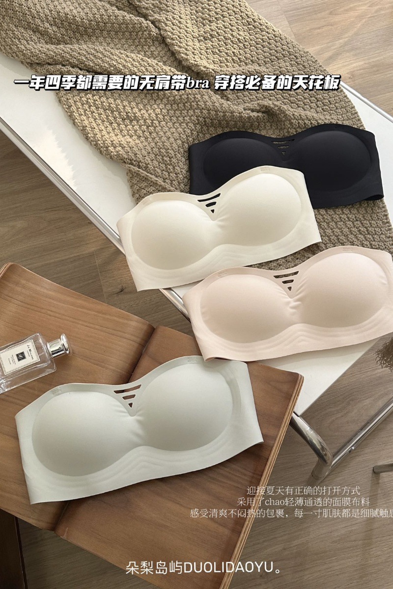 无肩带外内衣女薄款小胸聚拢显大漫画抹胸无痕裸感防滑隐形文胸罩
