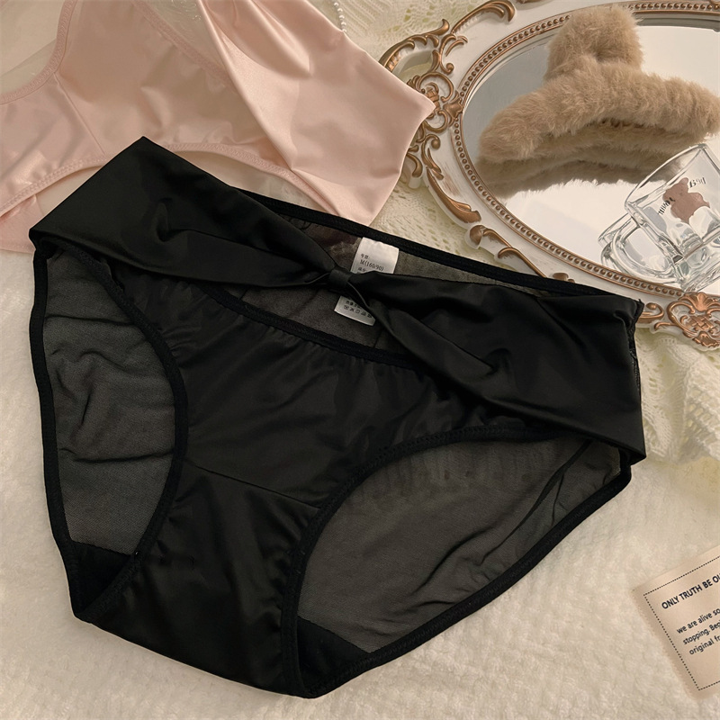 性感纯欲风缎面镂空内裤女生裆抑菌中腰舒适女士三角