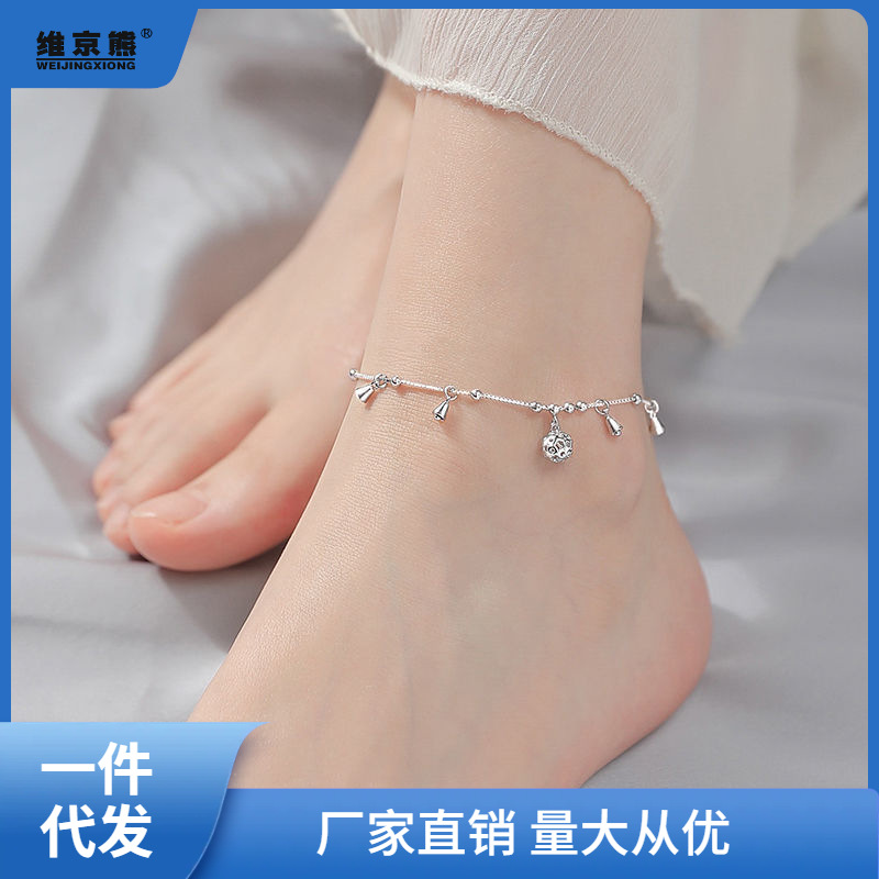 脚链女孩纯银925宫铃古风圆球铃铛网红聂小倩铃铛环新款夏