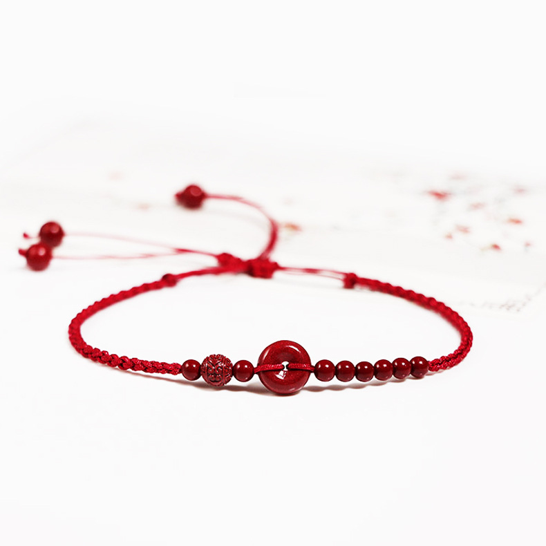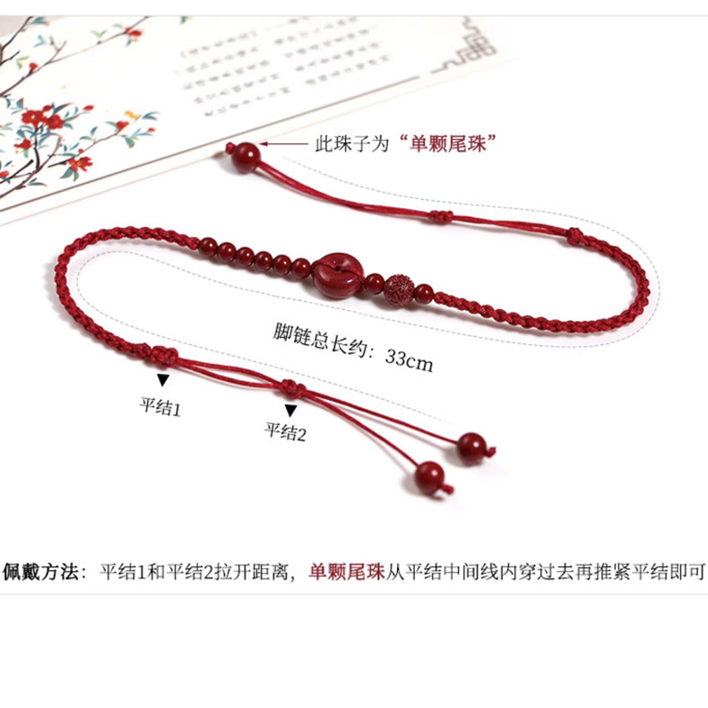 原矿朱砂手工编织本命年红绳脚链手工紫金砂脚绳中国风女情侣礼物