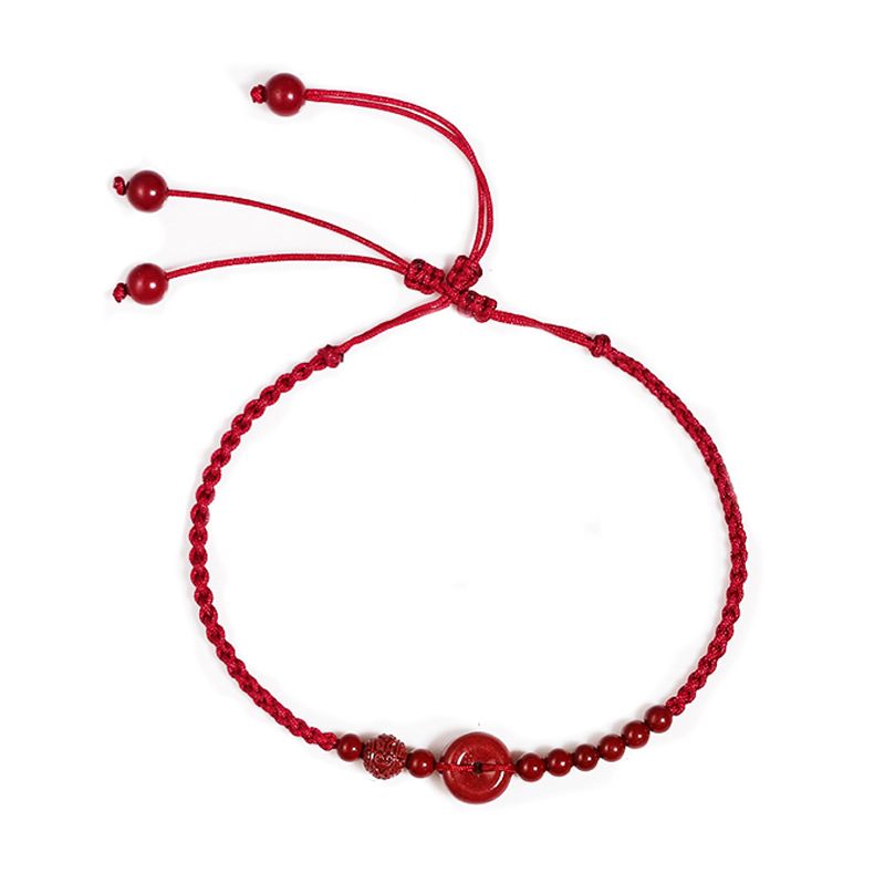 高品质朱砂平安扣脚链33~35cm