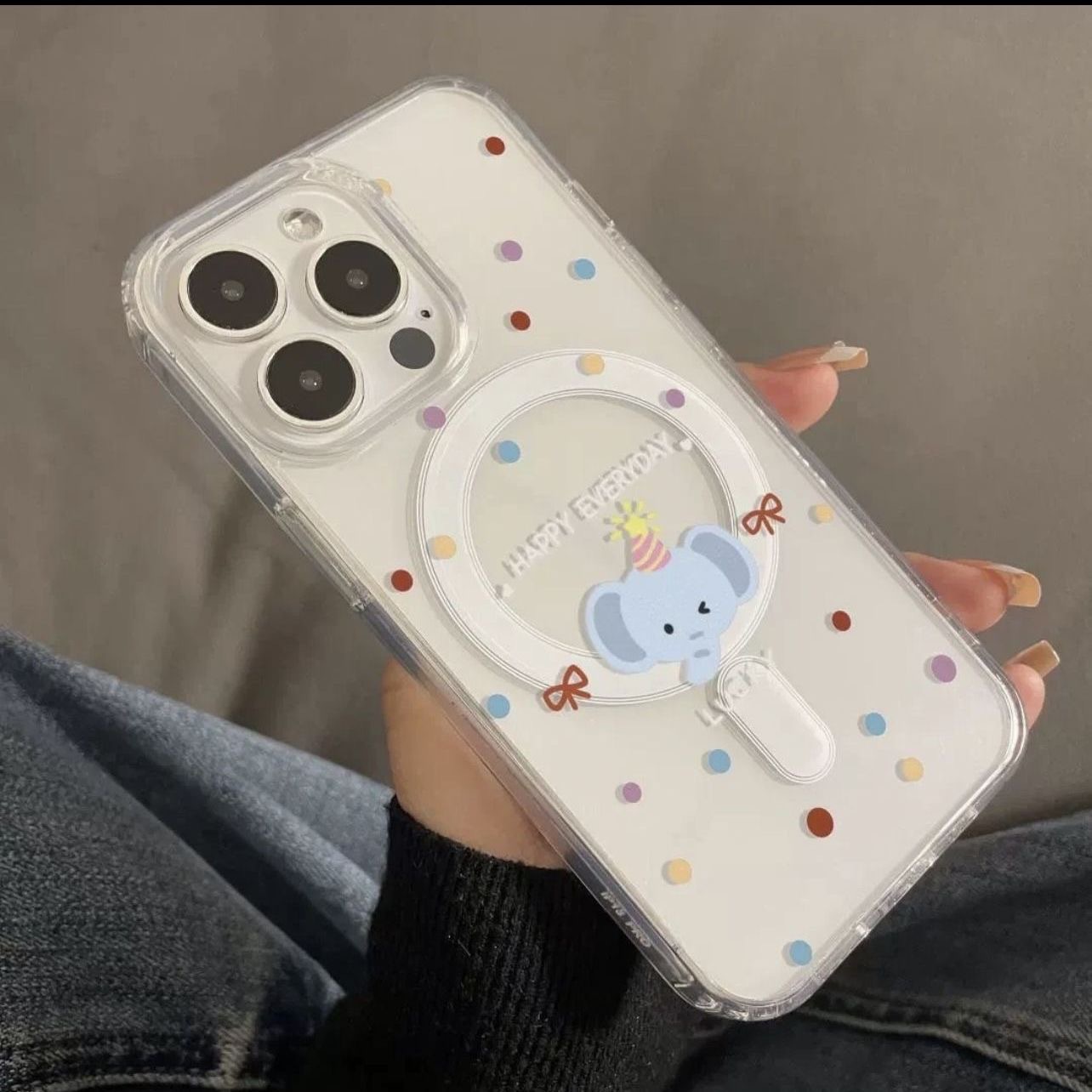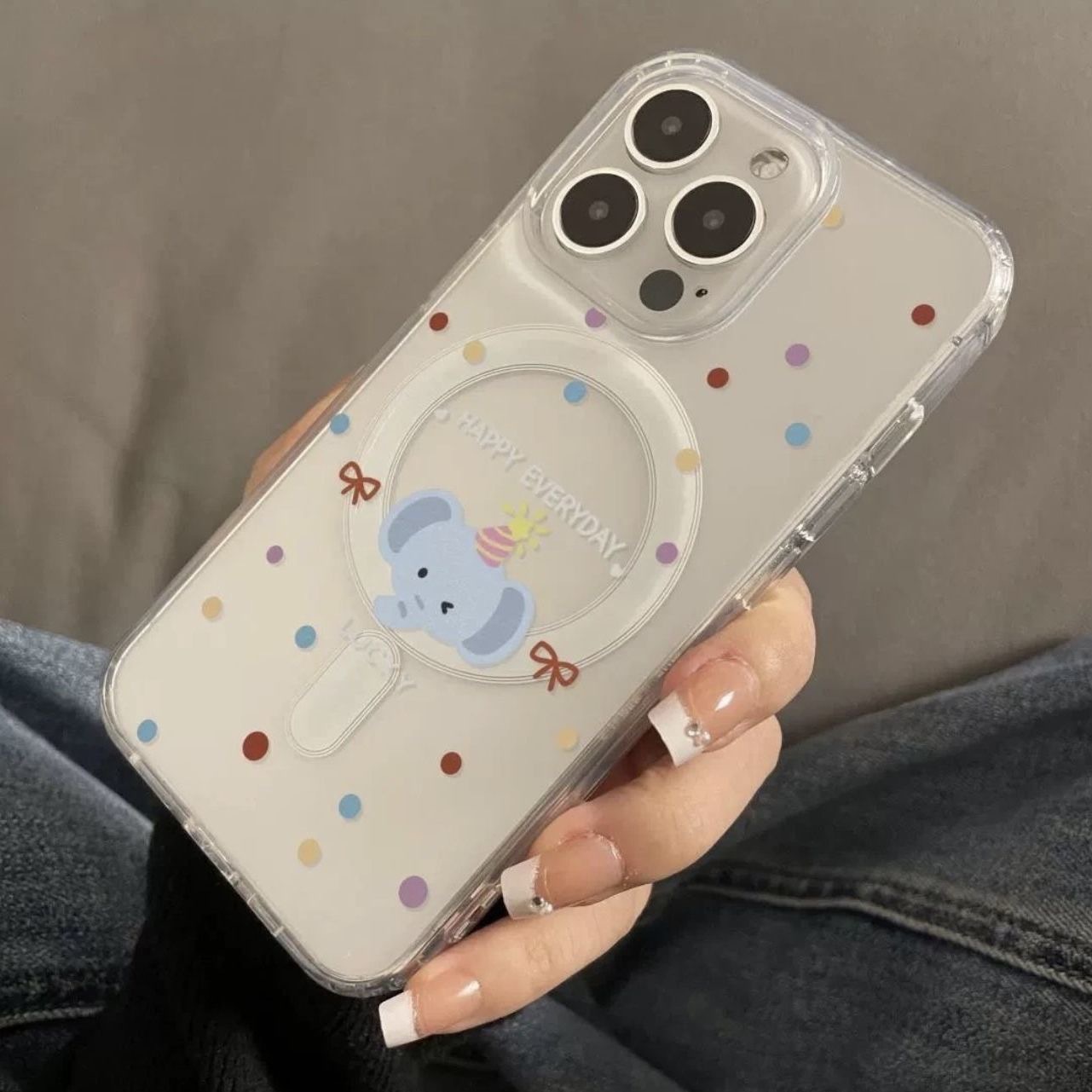 波点小象适用苹果15/14磁吸透明手机壳iPhone13/12ProMax软边11女