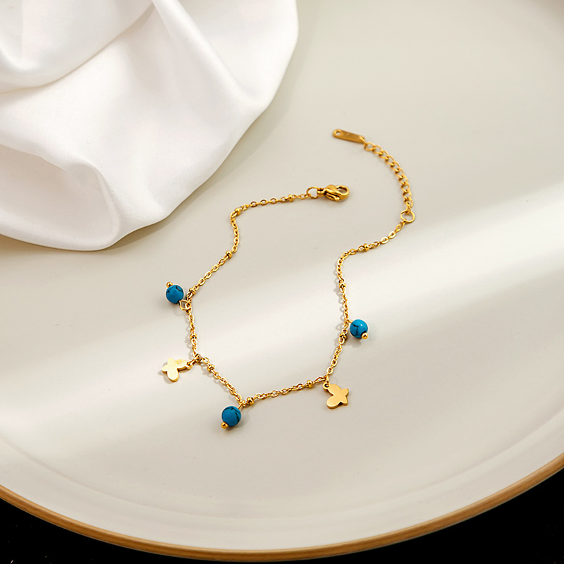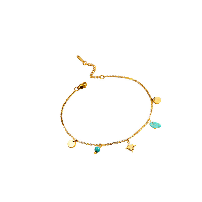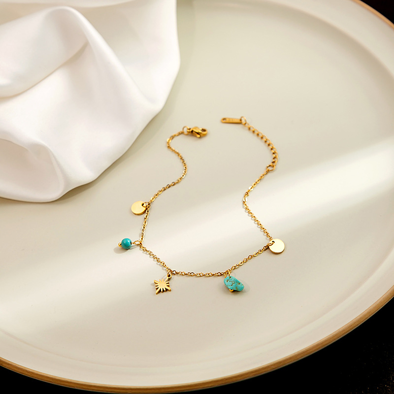 金属感松石几何圆片脚链 八芒星蝴蝶冷淡气质脚饰小众风配饰