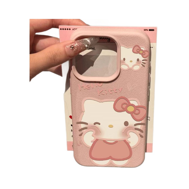 戳脸KT猫适用苹果16PROMAX手机壳iPhone15爆款14荔枝纹13软壳12粉