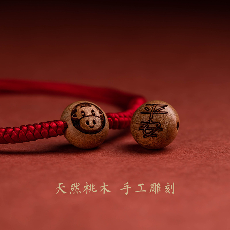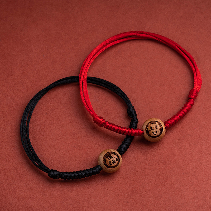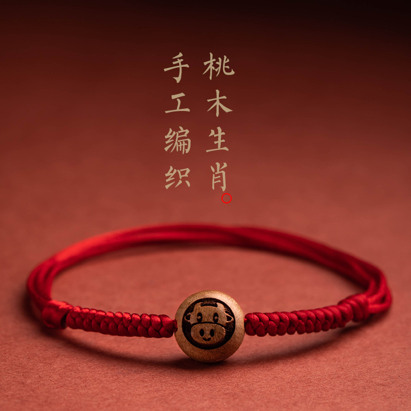花素红绳手工编织脚绳桃木十二生肖男女情侣简约款龙年本命年脚链