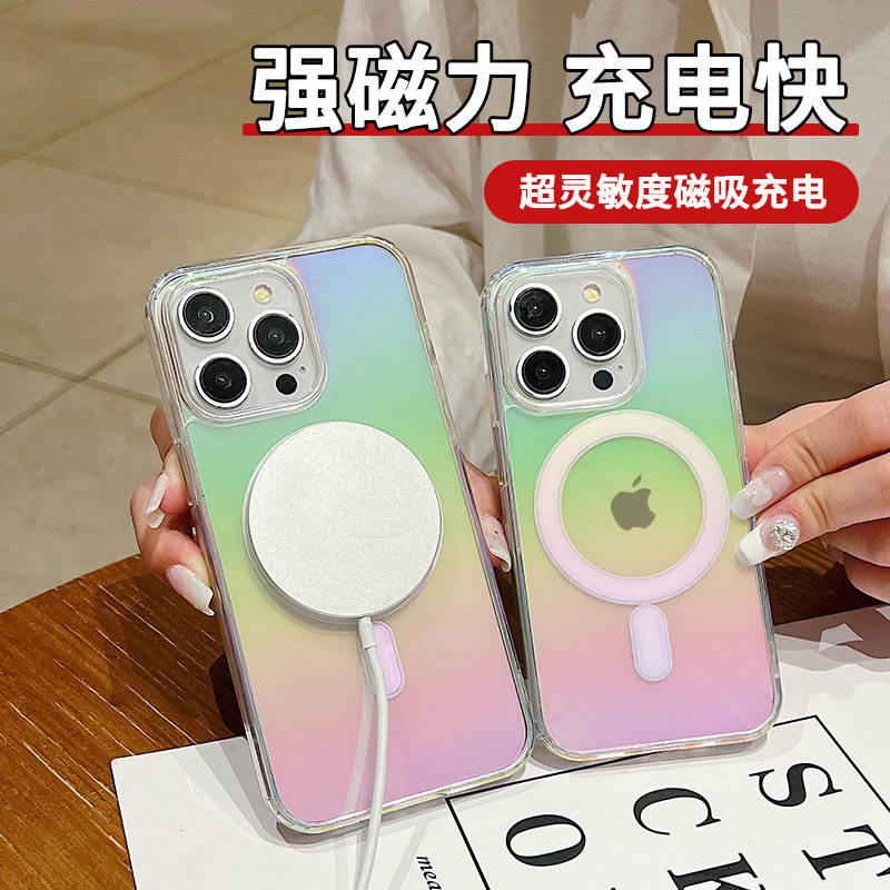 适用苹果16promax磁吸手机壳渐变彩镀iPhone14软边气囊防摔保护套