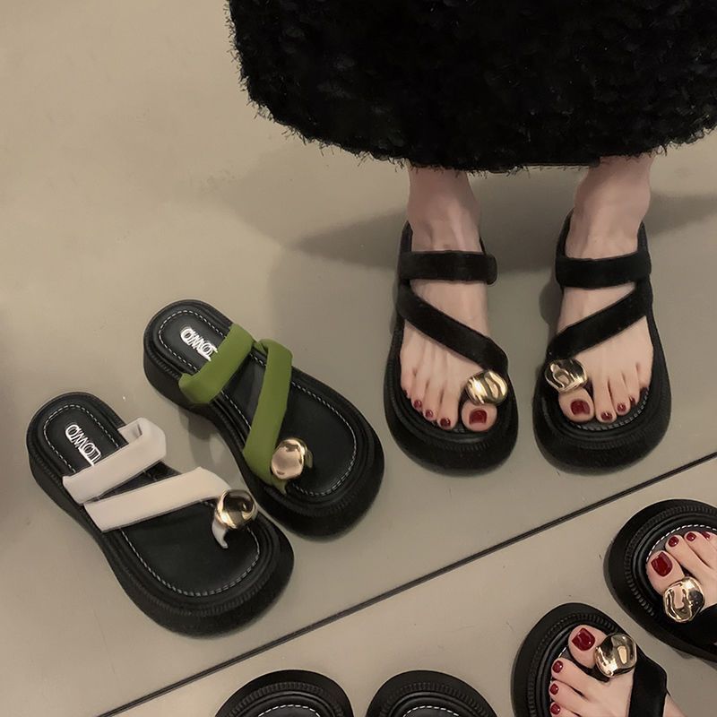 套趾拖鞋女士夏天新款时尚百搭金属厚底舒适休闲夹脚凉拖鞋