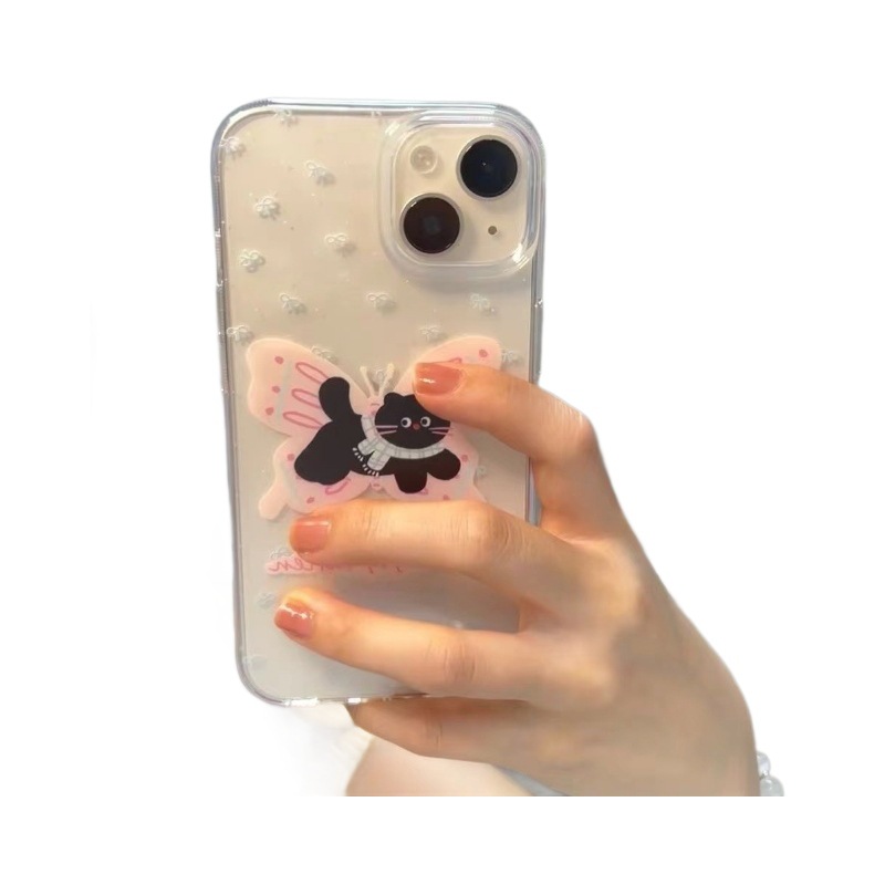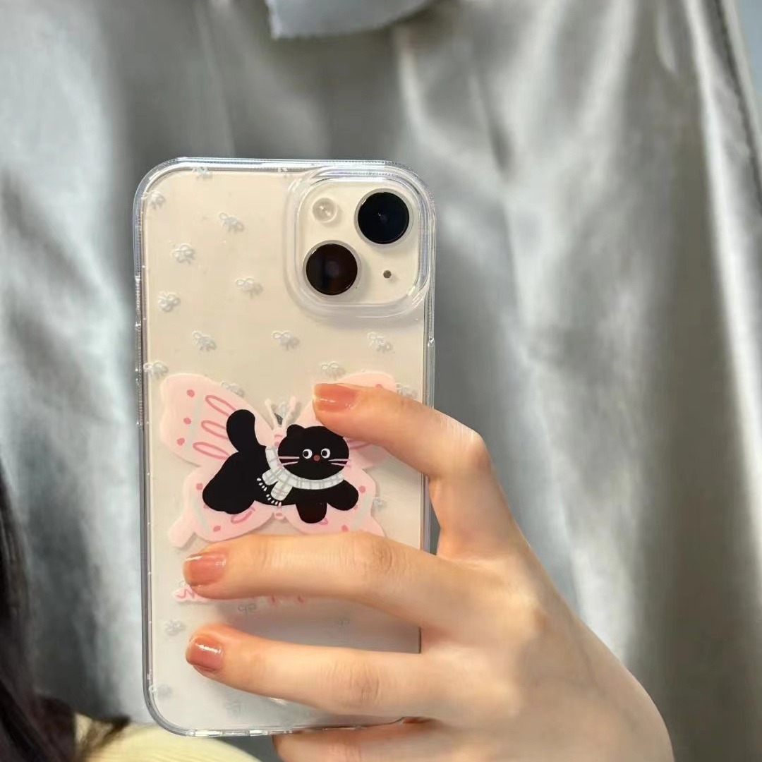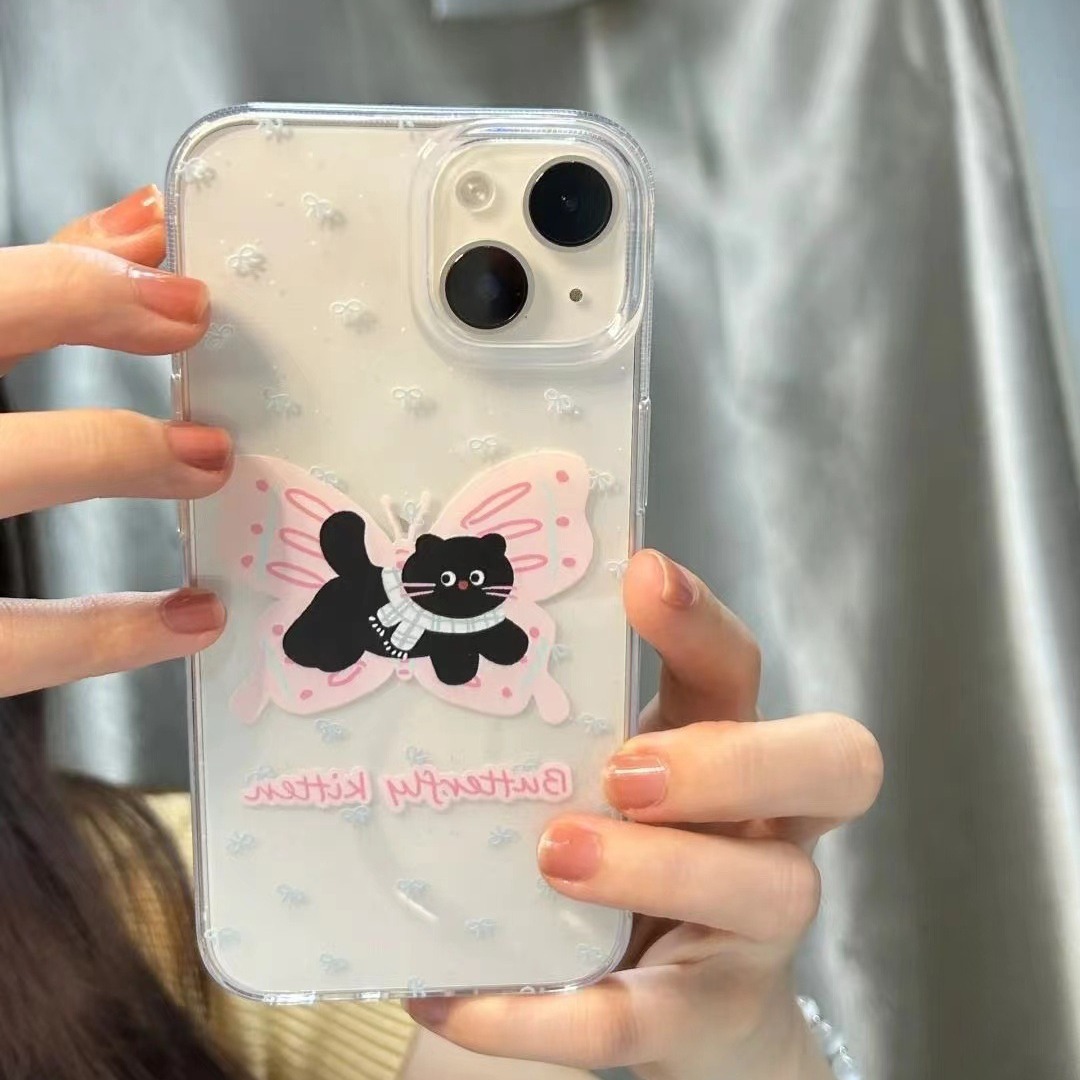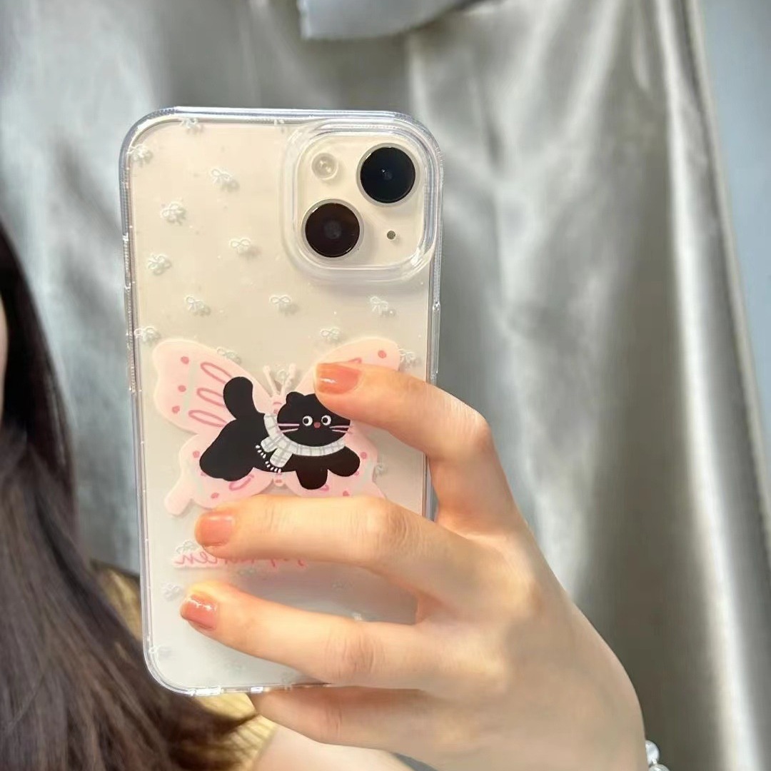 蝴蝶黑猫适用苹果15pro手机壳14/13/12软壳XR/XS11透明7plus防摔