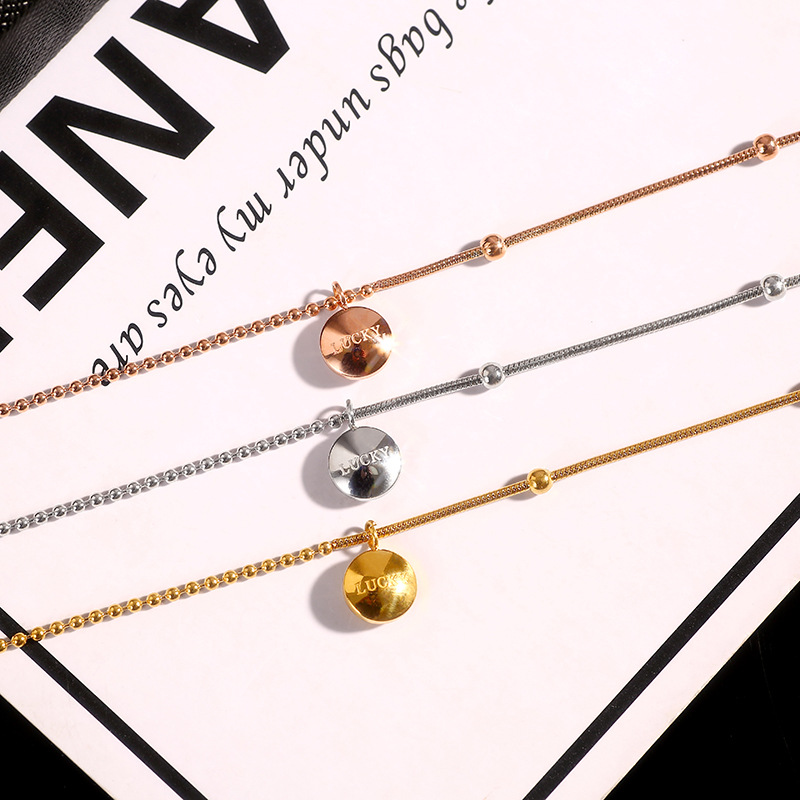 玫瑰金 LUCK双拼脚链