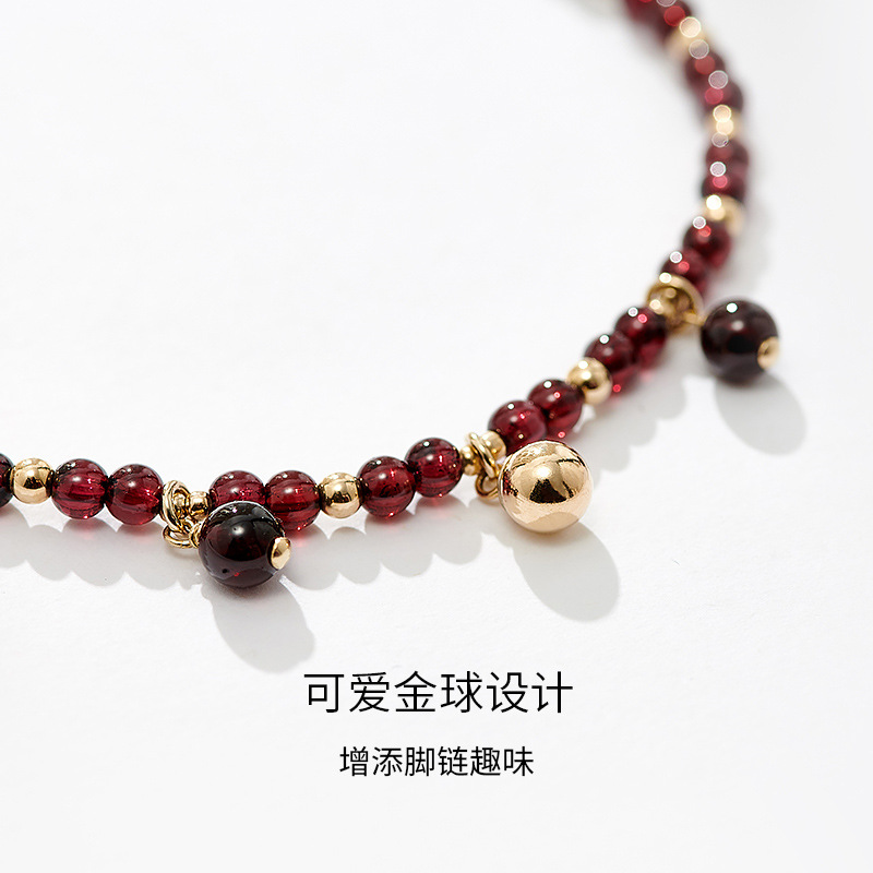 【梅落脚畔】巴度天然水晶脚链女新款韩版时尚石榴石脚饰现货