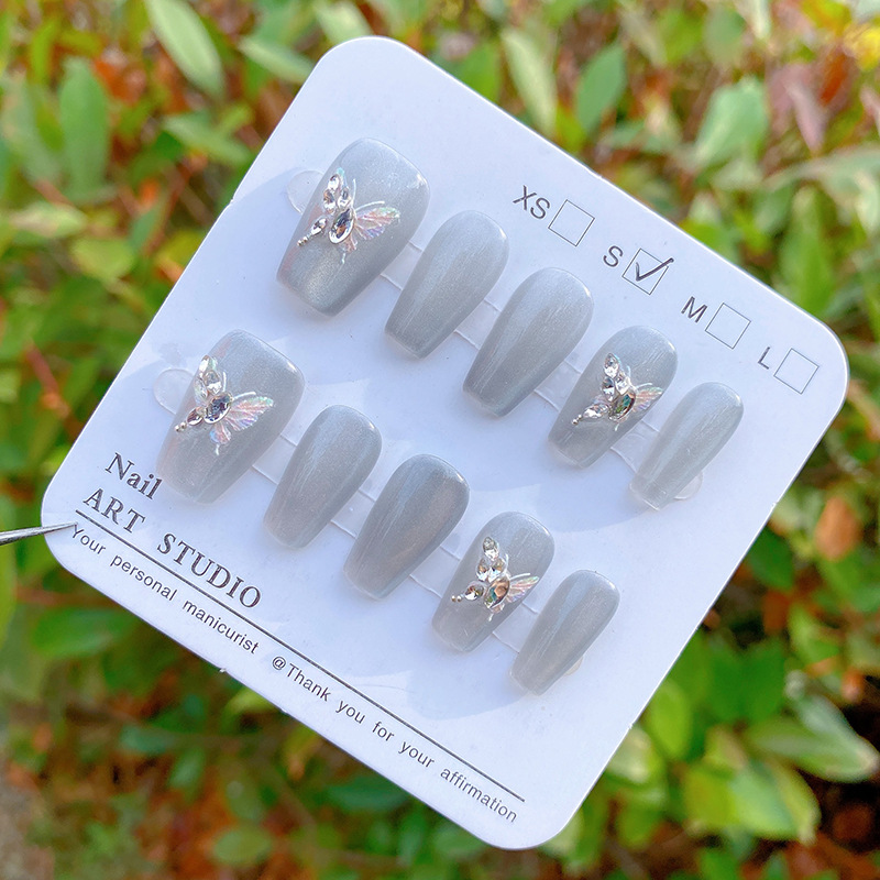 纯手工穿戴甲网红款上春山蝴蝶猫眼高级显白美甲成品可拆卸甲片