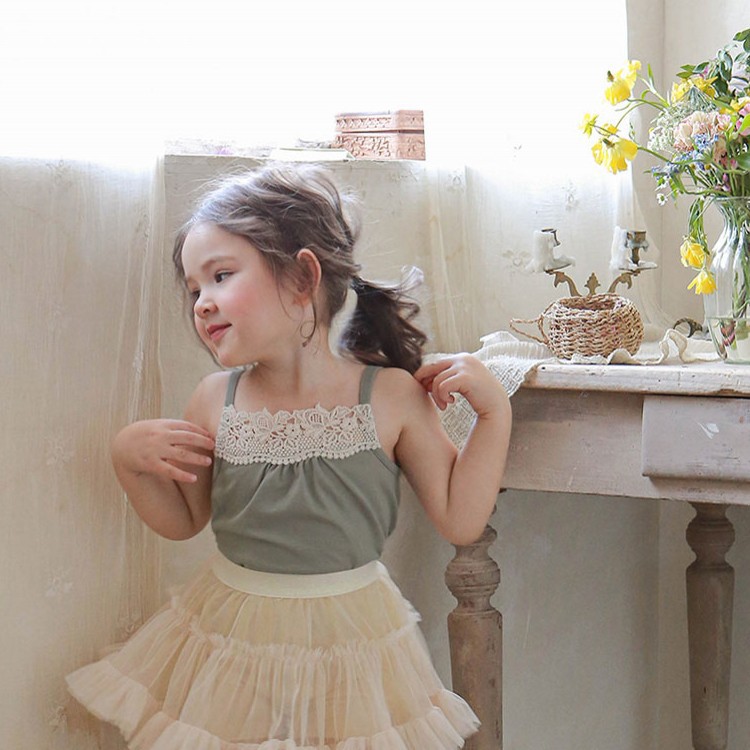 夏款草莓珊女孩女童薄棉柔软蕾丝花边多色吊带背心T恤