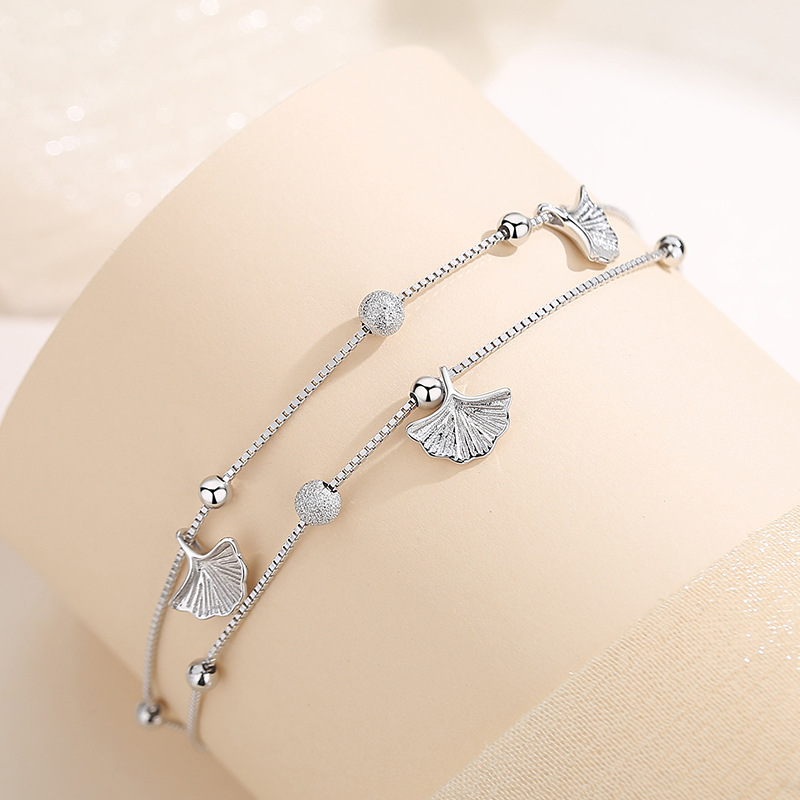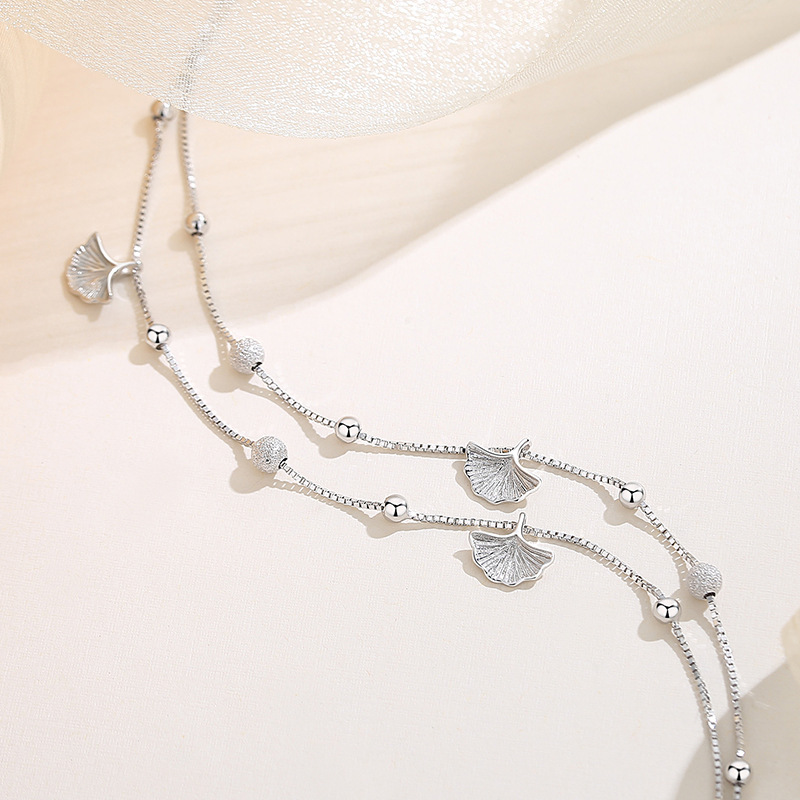 金宏宇新款三生有杏脚链女纯银森系银杏叶双层脚踝脚饰品韩版设计