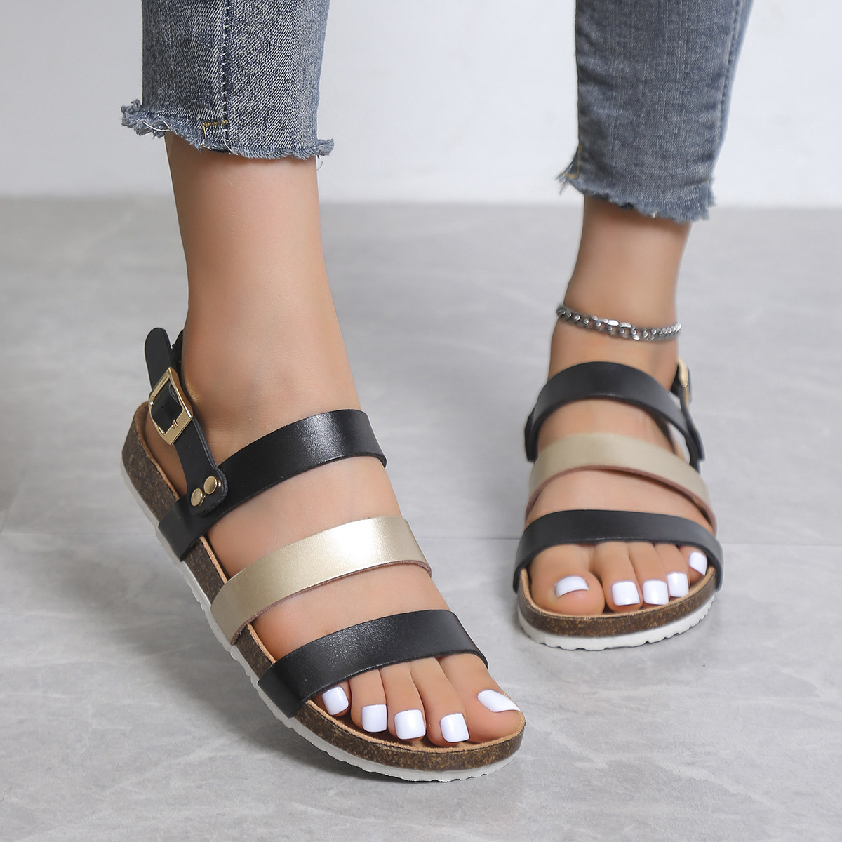 独立站软木凉鞋女坡跟舒适新款中跟百搭外穿时尚女休闲鞋