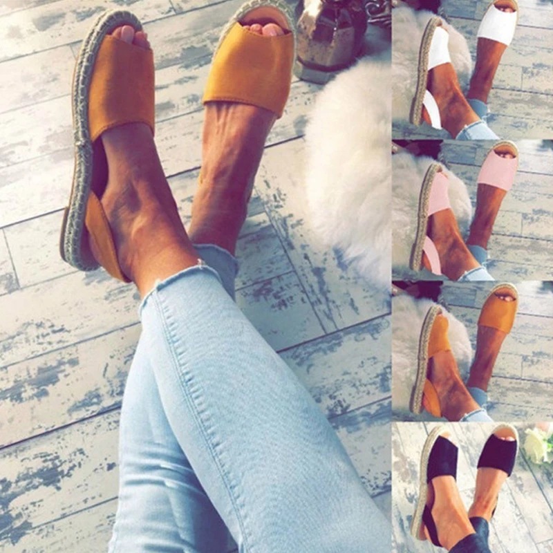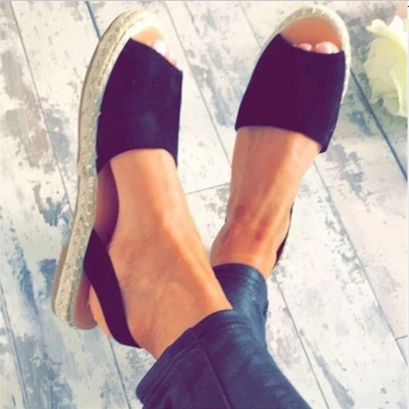 跨境热卖wish春夏新款女式罗马复古麻绳厚底鱼嘴凉鞋女拖鞋