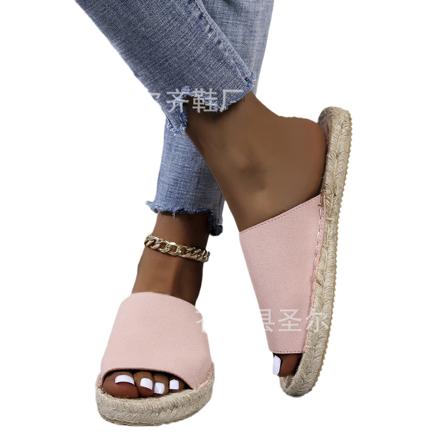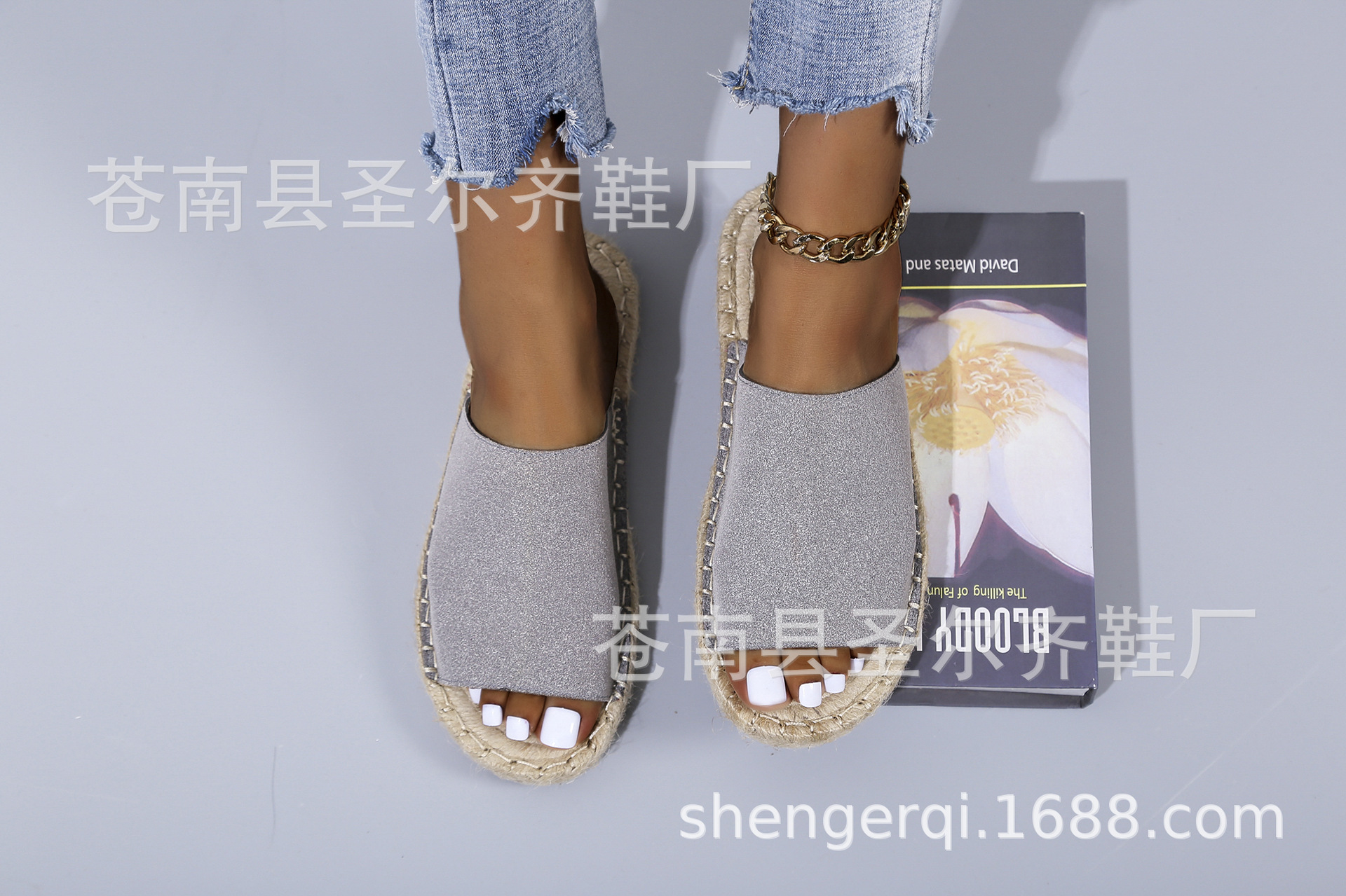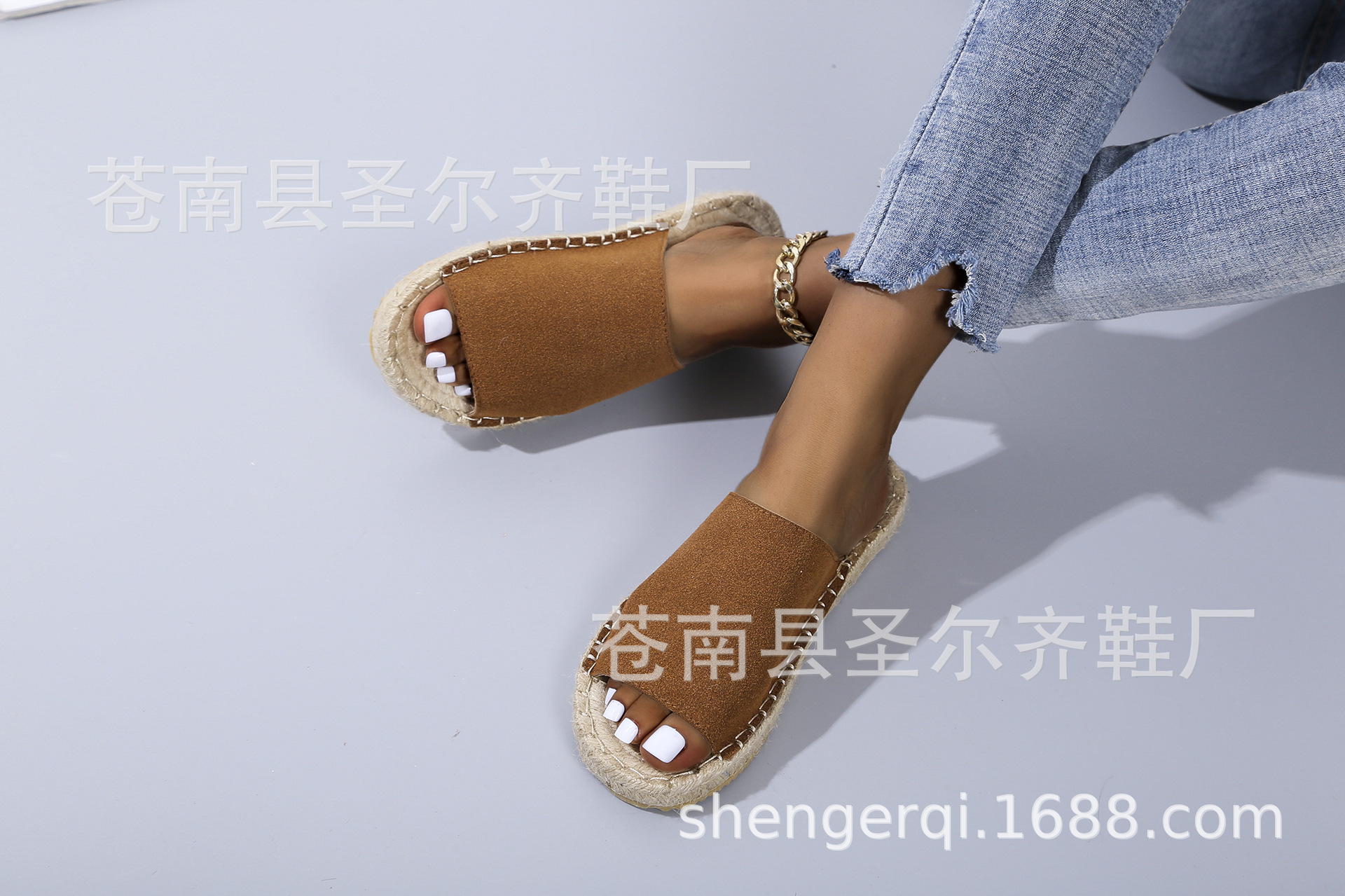 wish亚马逊穆勒一片式缝线渔夫休闲平底手工草编真麻绳底拖鞋