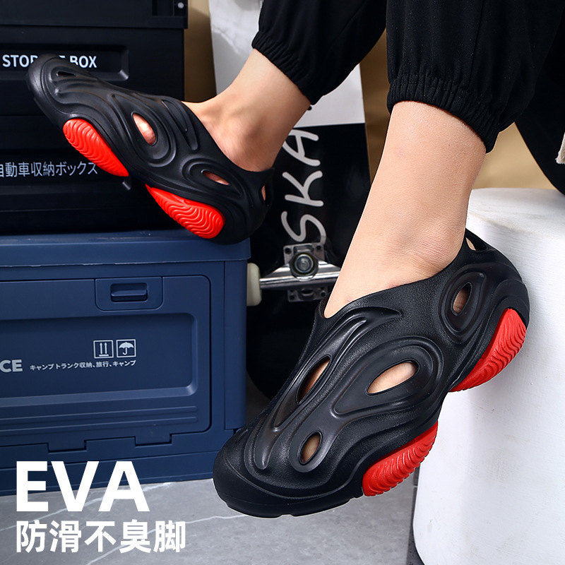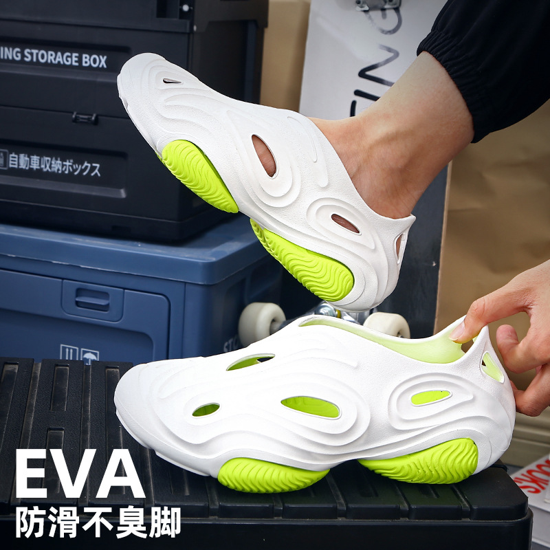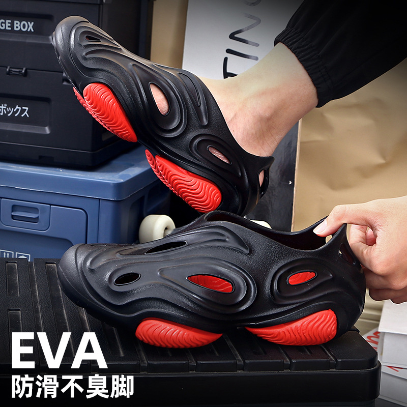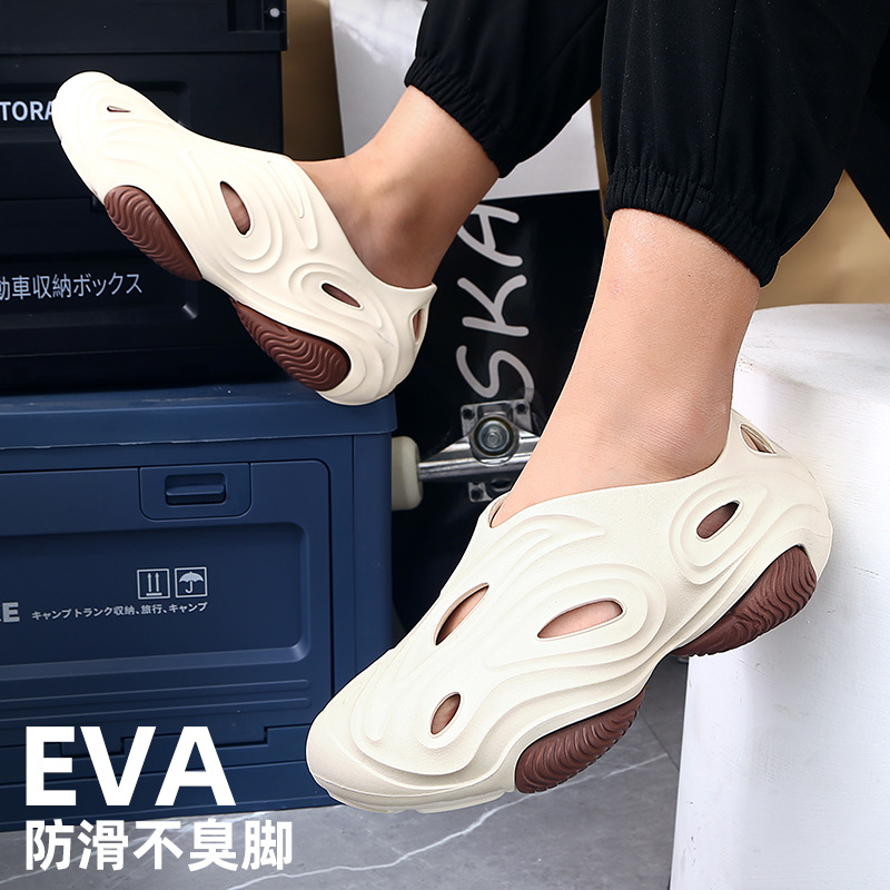 EVA踩屎感洞洞鞋男款套脚拖鞋外穿时尚防滑耐磨厚底沙滩凉拖鞋女