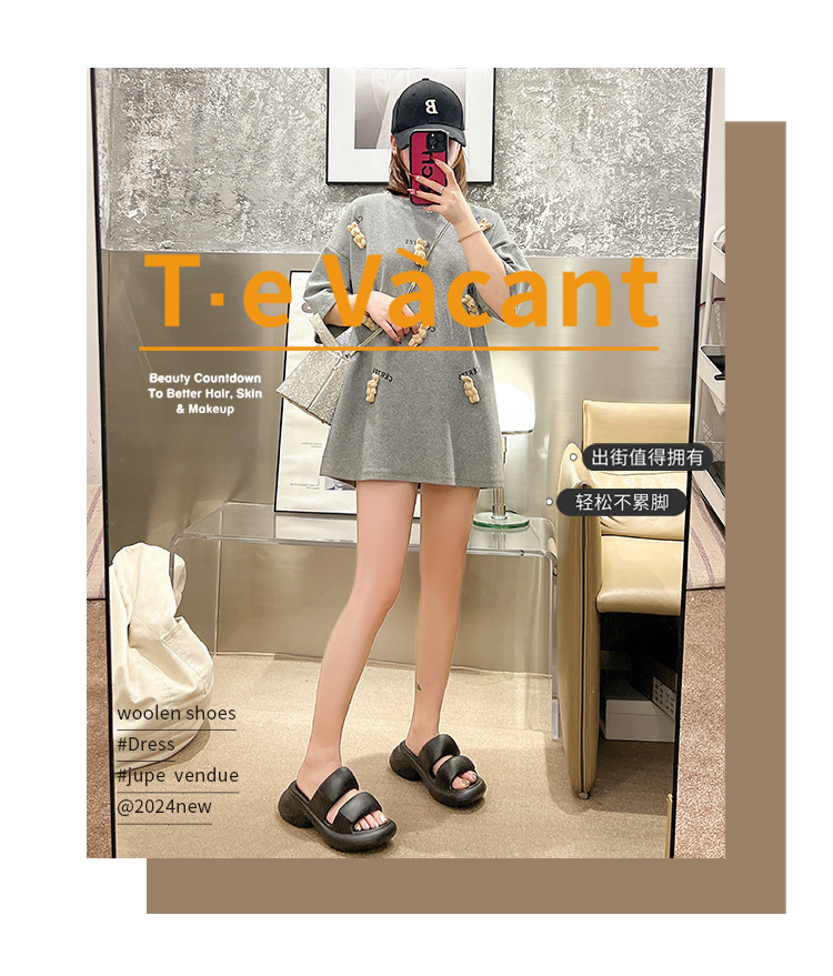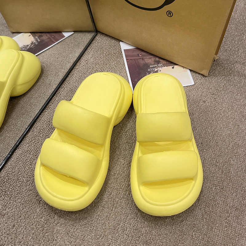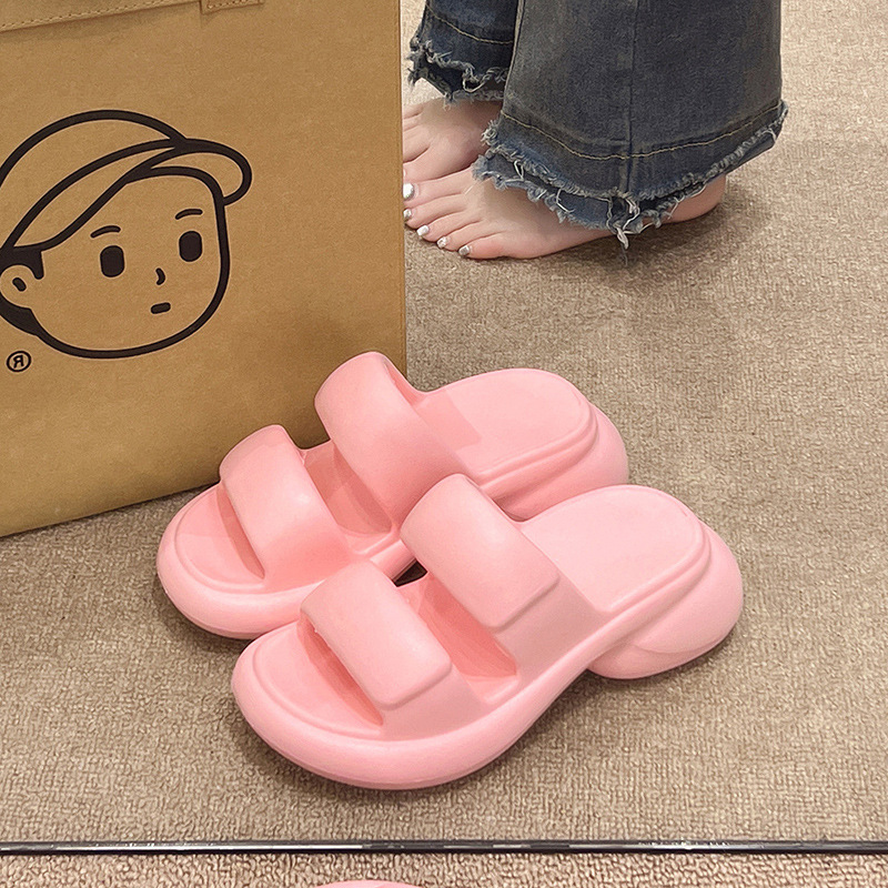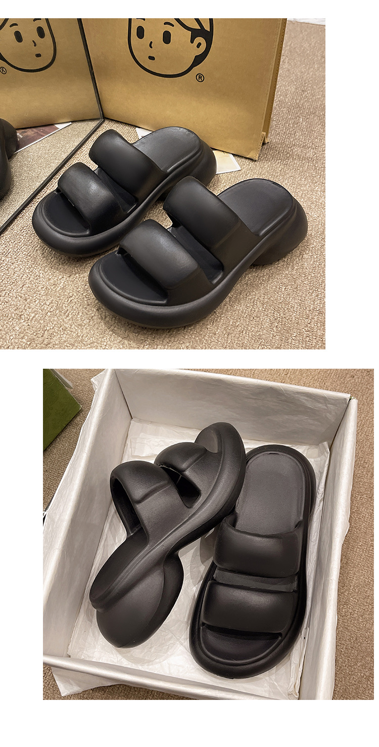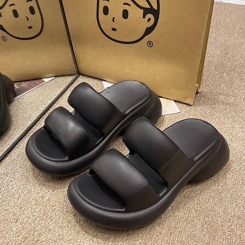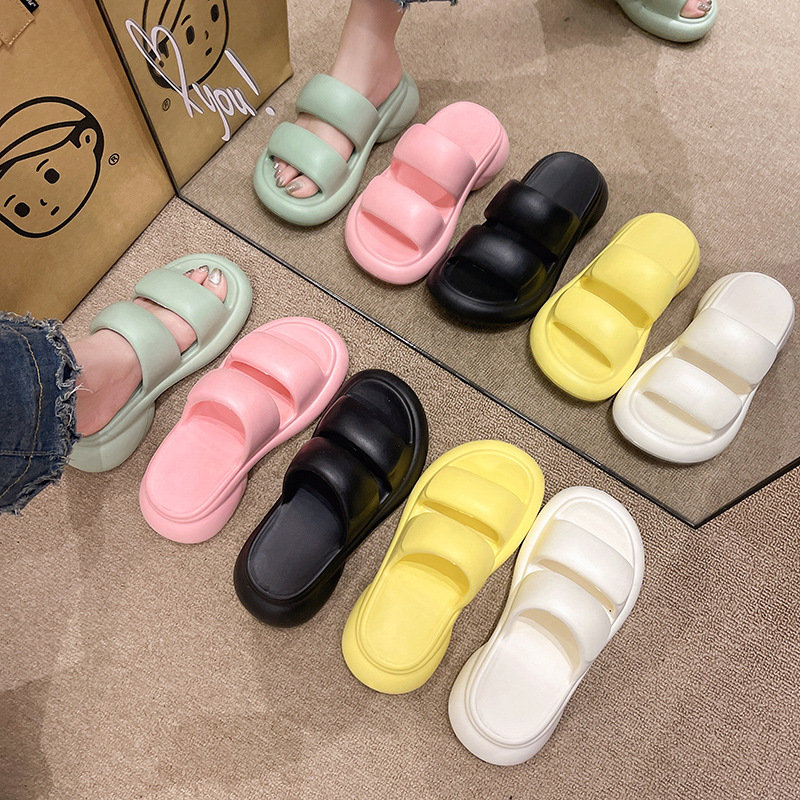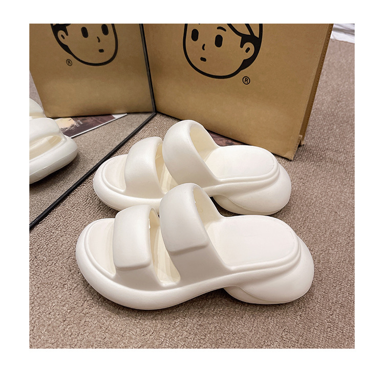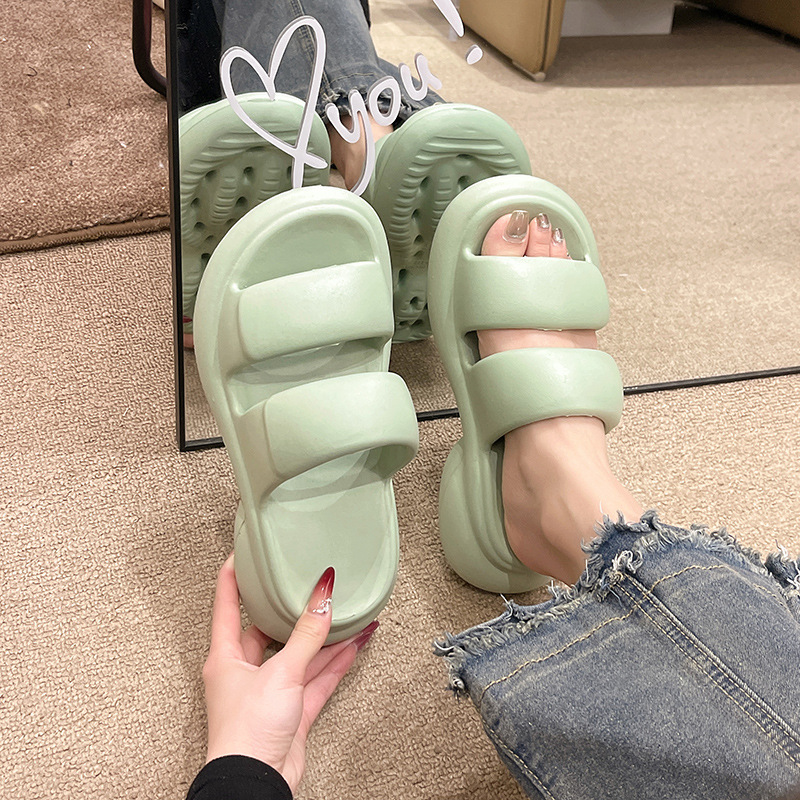 坡跟拖鞋女EVA踩屎感厚底防滑双带一字拖鞋欧美时尚休闲沙滩凉拖