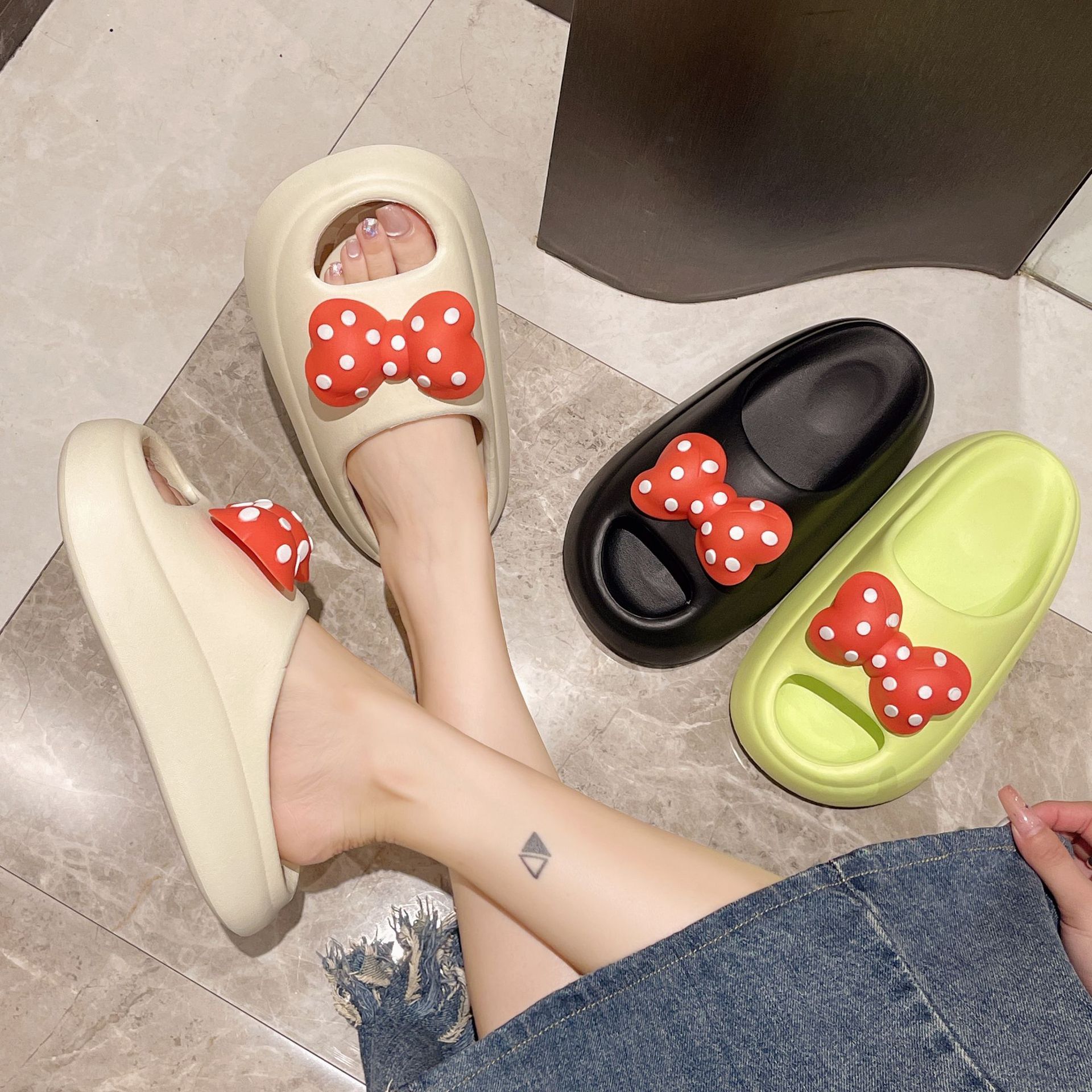 EVA拖鞋女夏季居家外穿新款波点蝴蝶结浴室防滑软底踩屎感一字拖