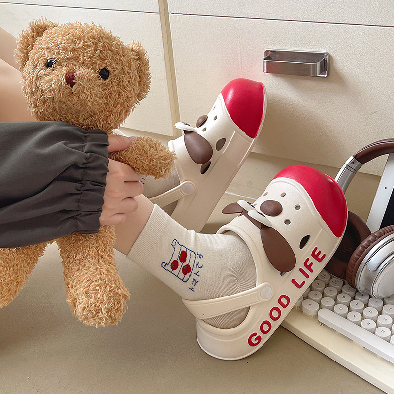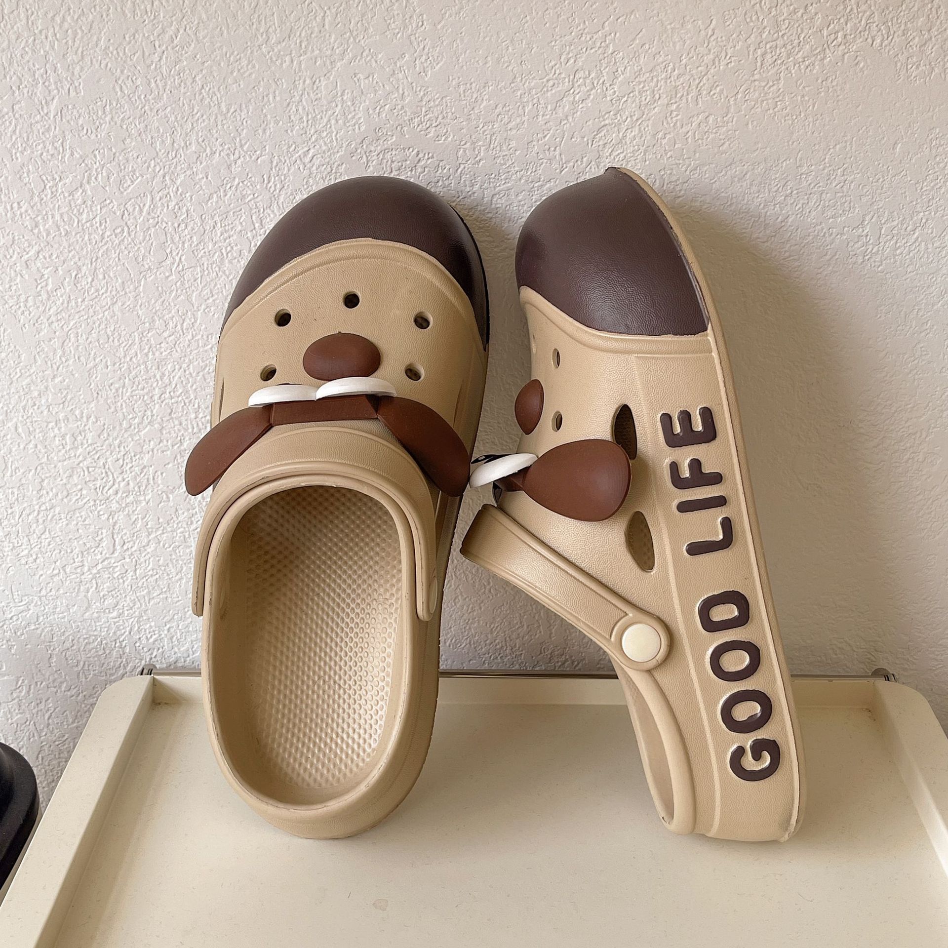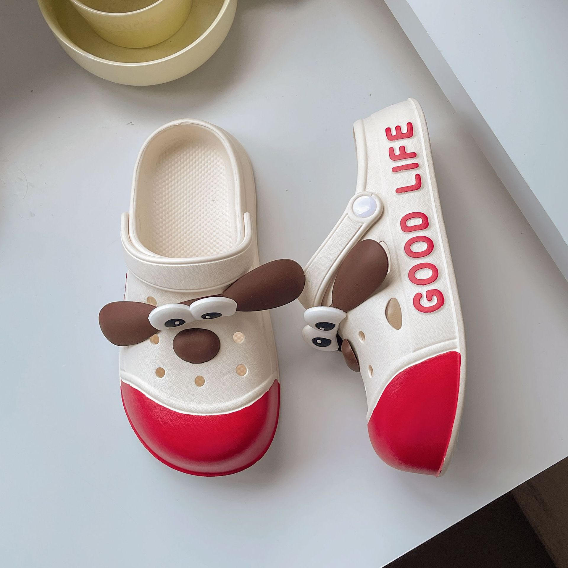 洞洞鞋女夏季ins潮卡通立体小狗居家外穿防滑透气沙滩情侣款拖鞋