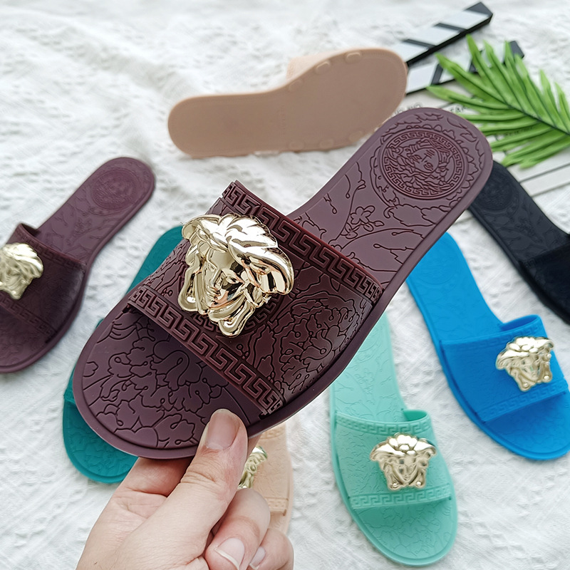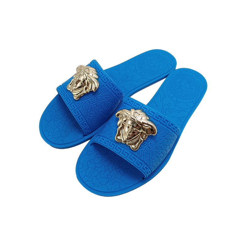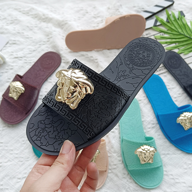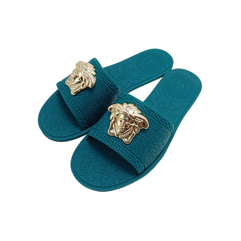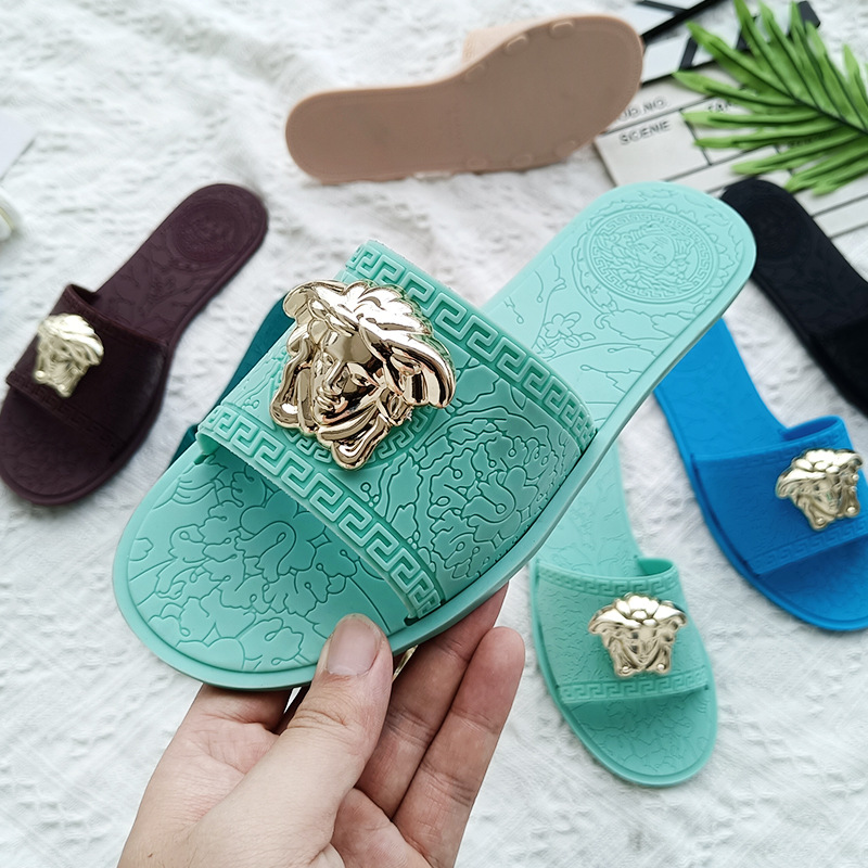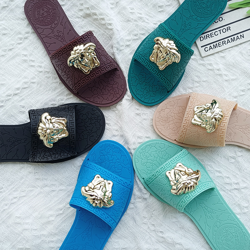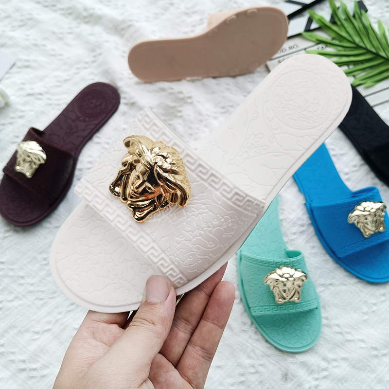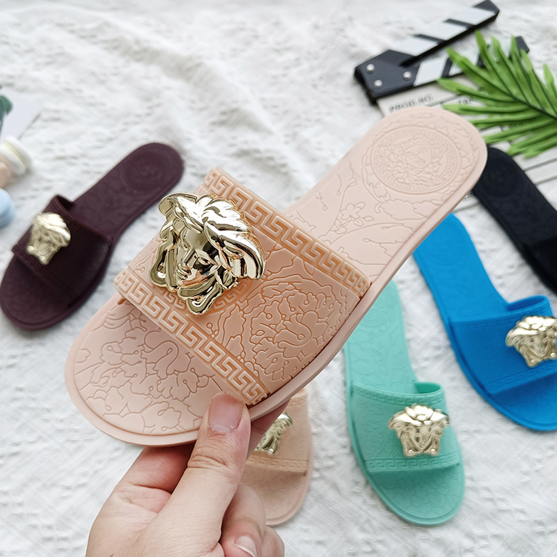 平底拖鞋女ins爆款夏新款欧美时尚slipper外穿金属美人头印花