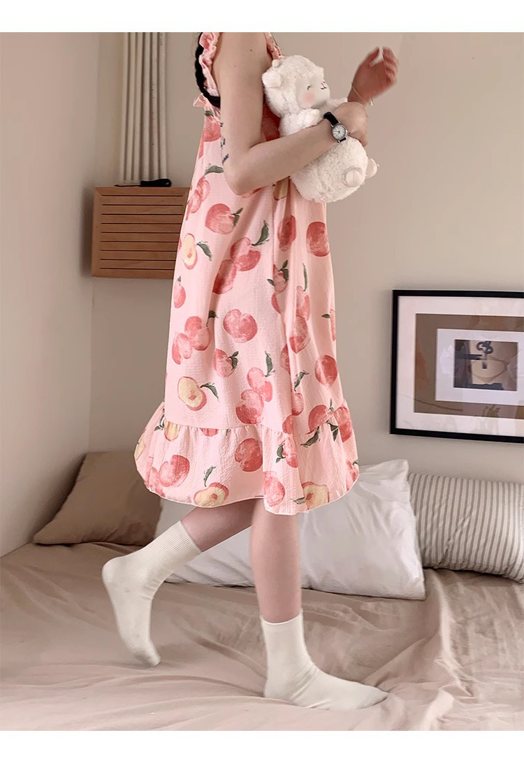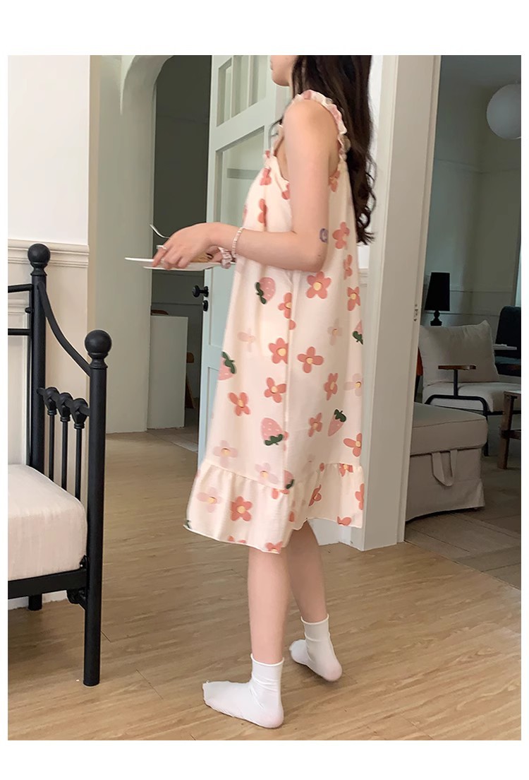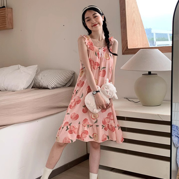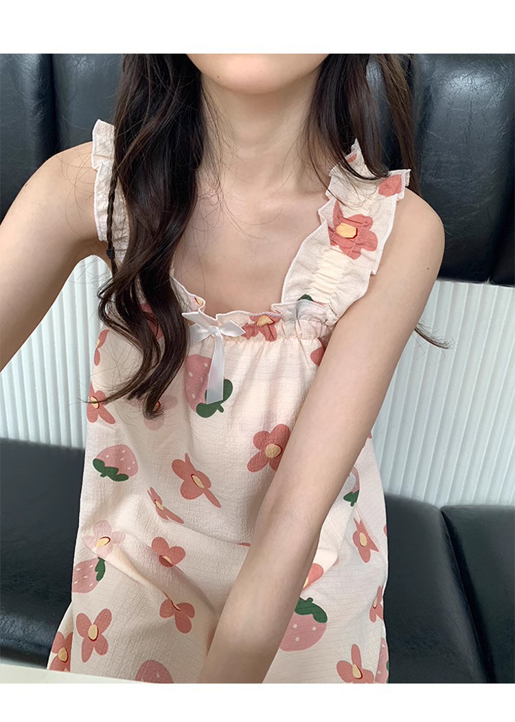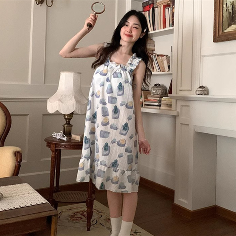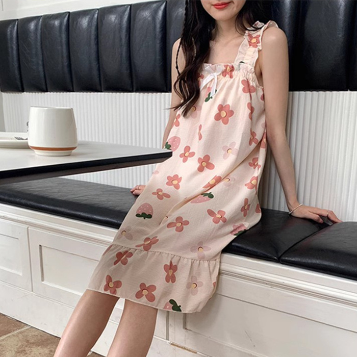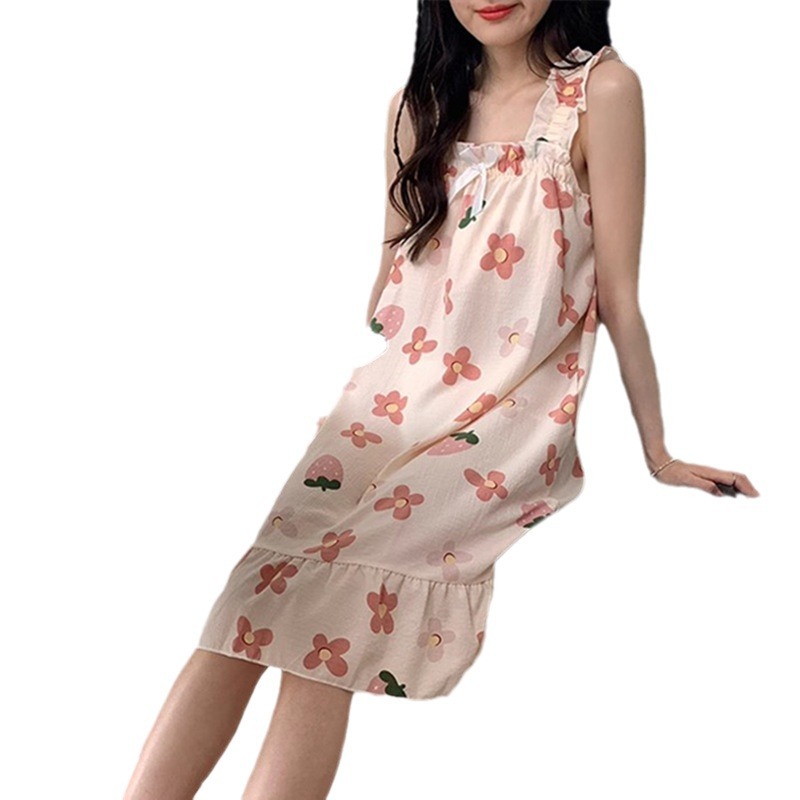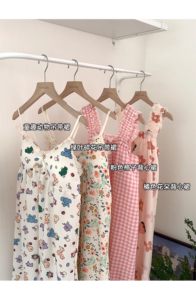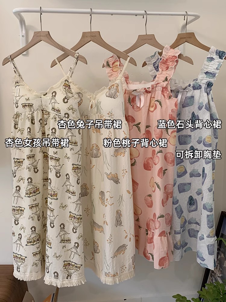 夏季带胸垫可拆卸吊带睡裙薄款甜美仙女风梭织泡泡棉可外穿家居服