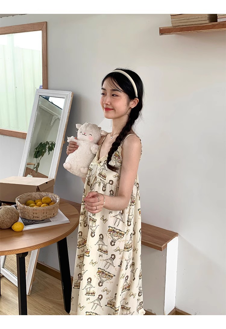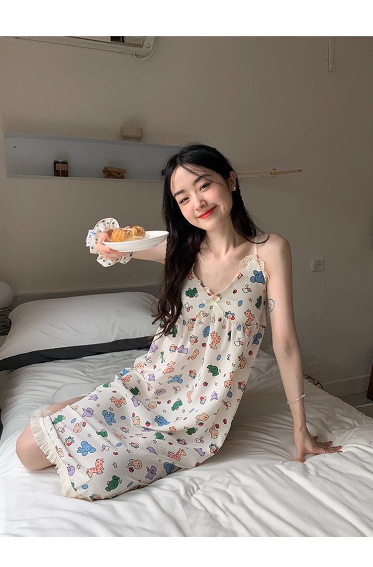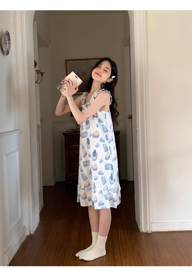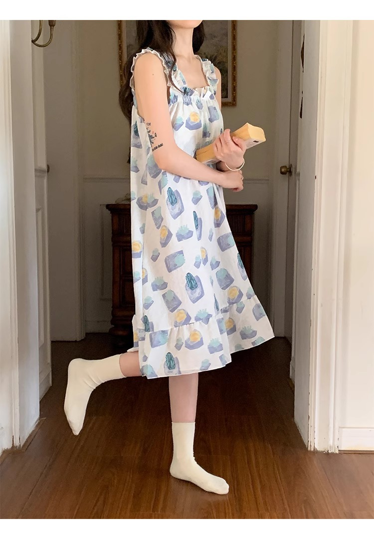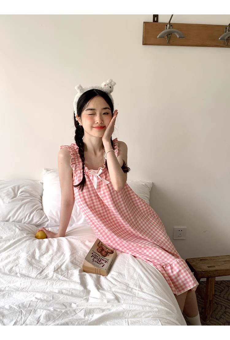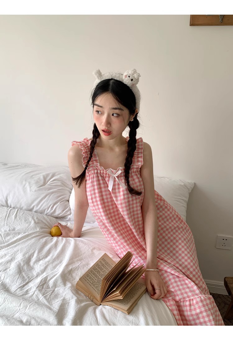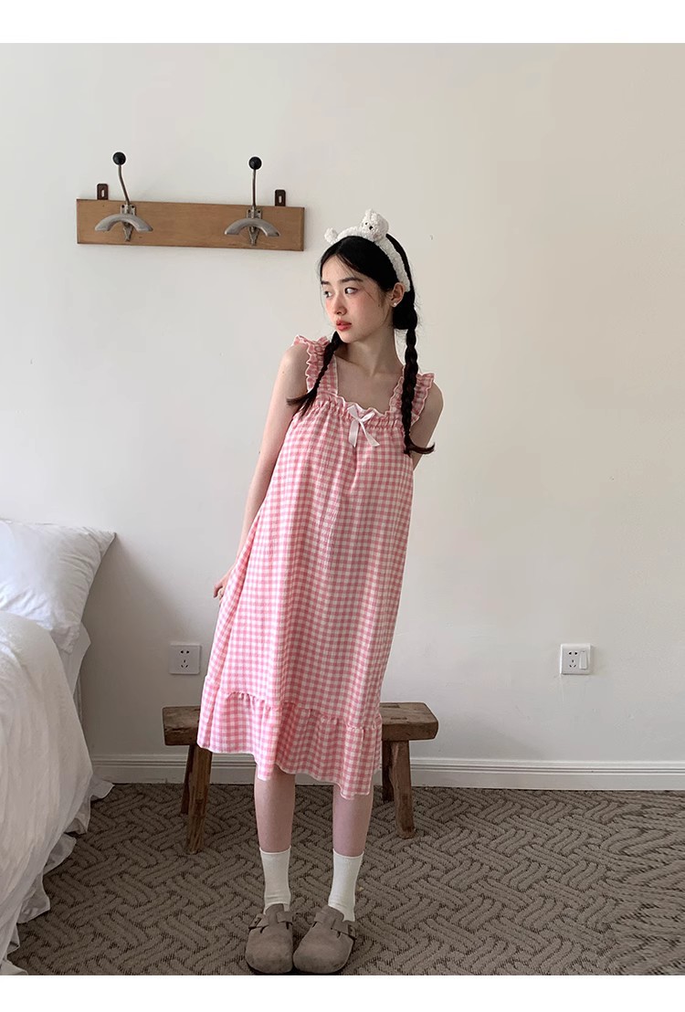 夏季带胸垫可拆卸吊带睡裙薄款甜美仙女风梭织泡泡棉可外穿家居服