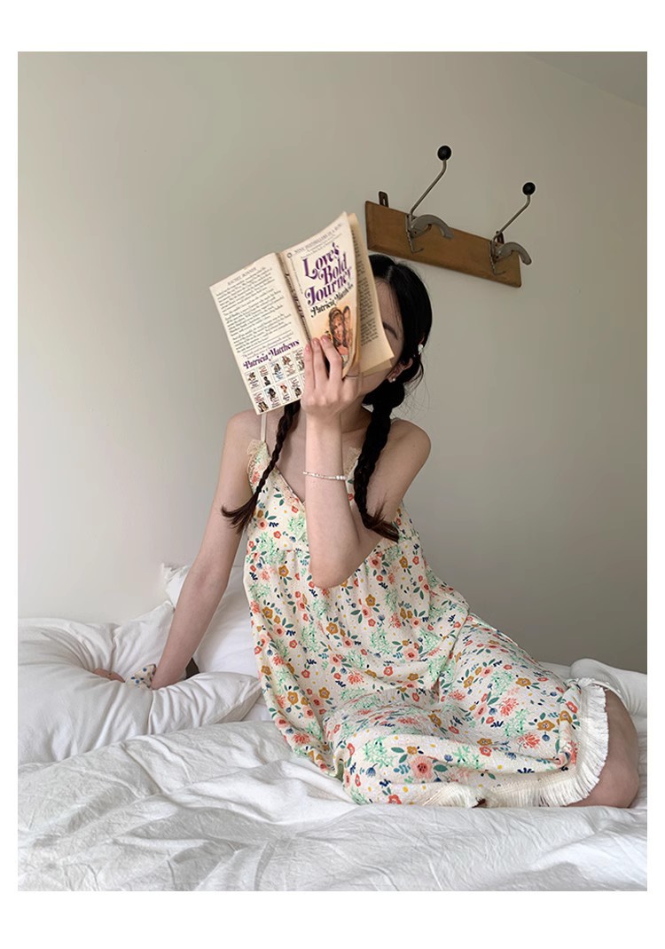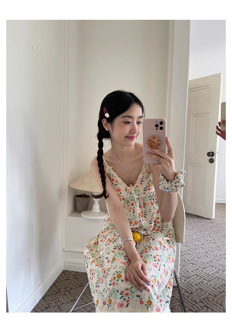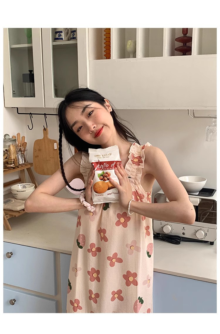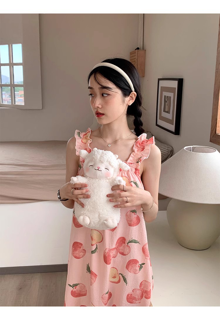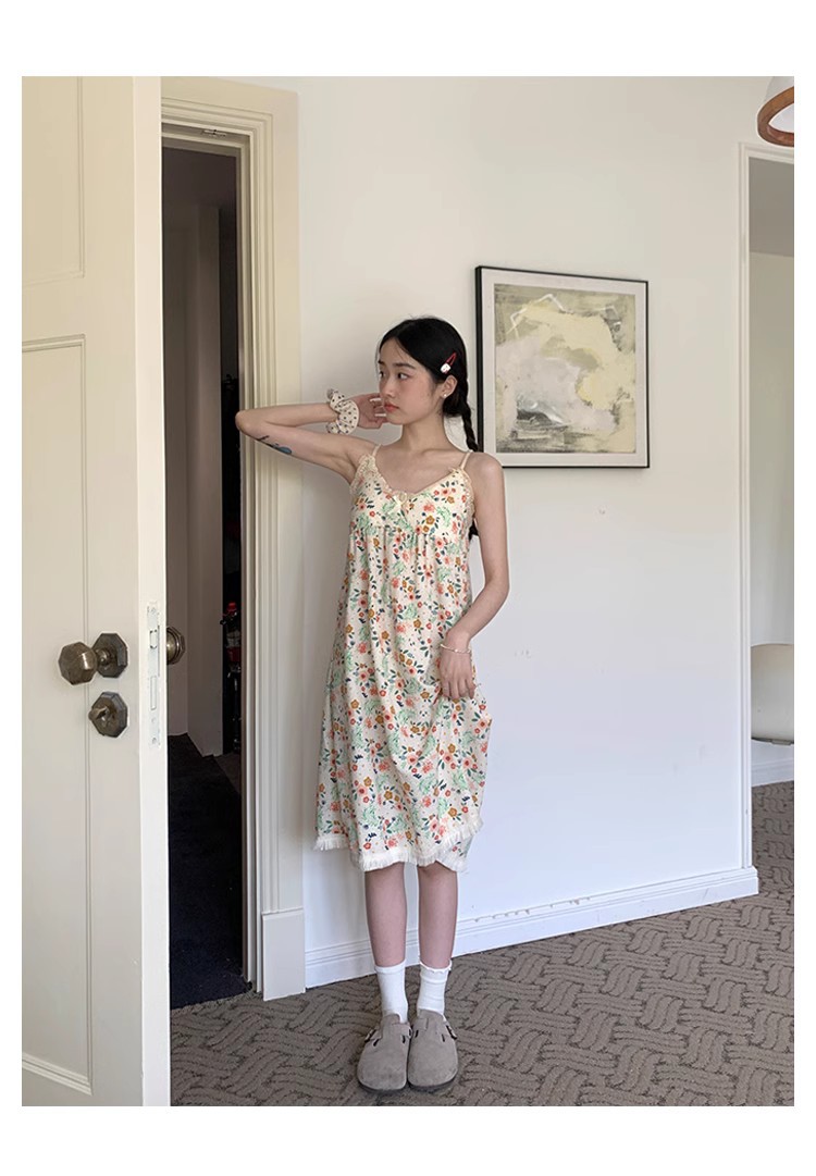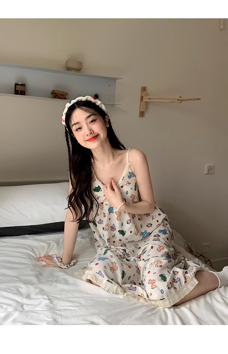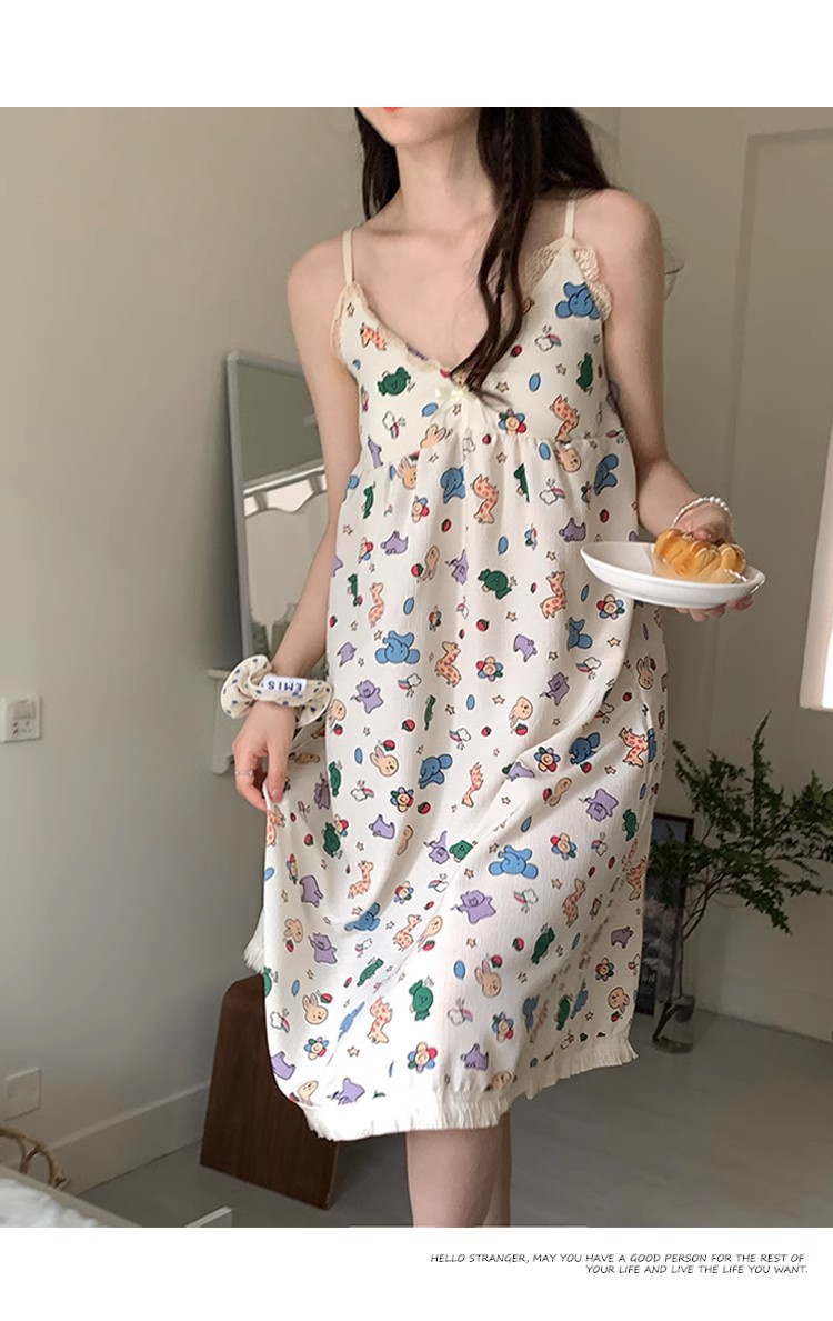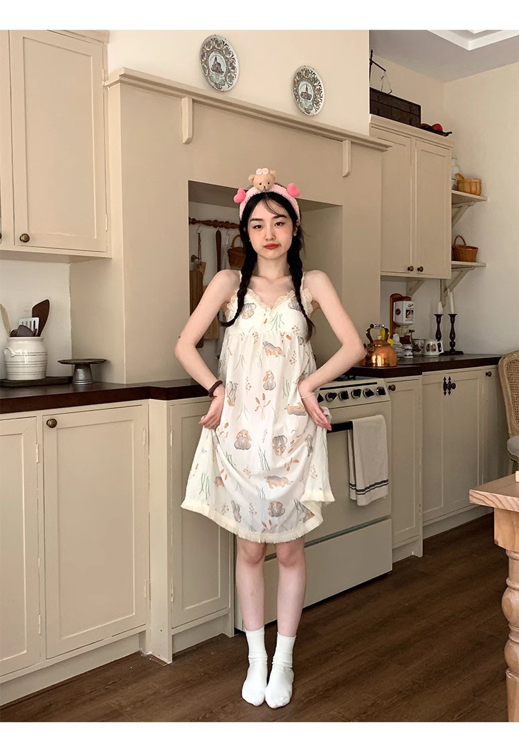 夏季带胸垫可拆卸吊带睡裙薄款甜美仙女风梭织泡泡棉可外穿家居服