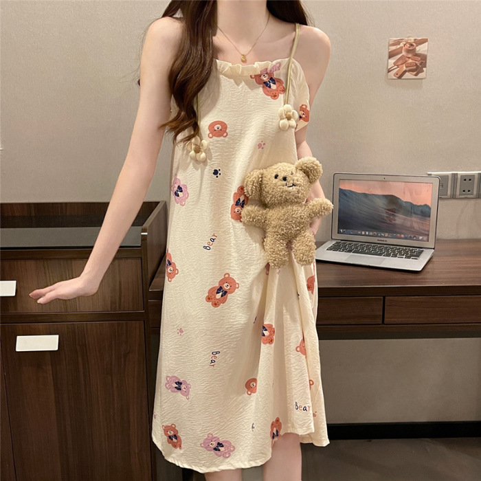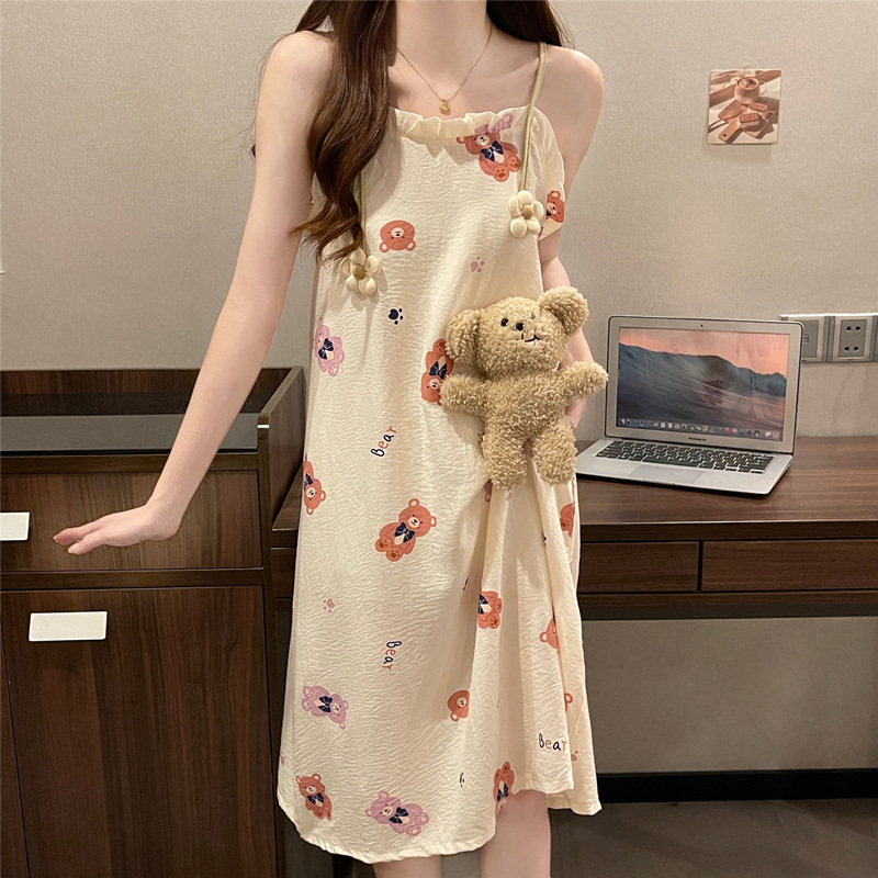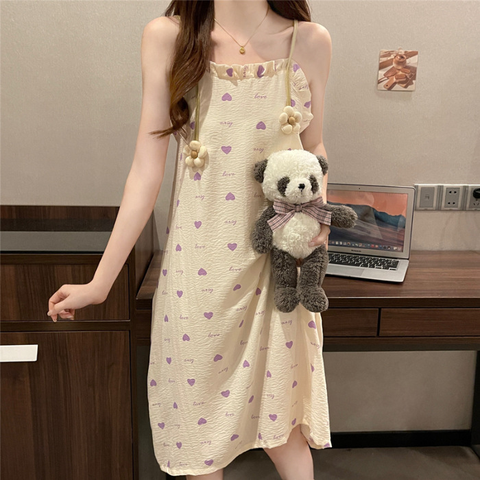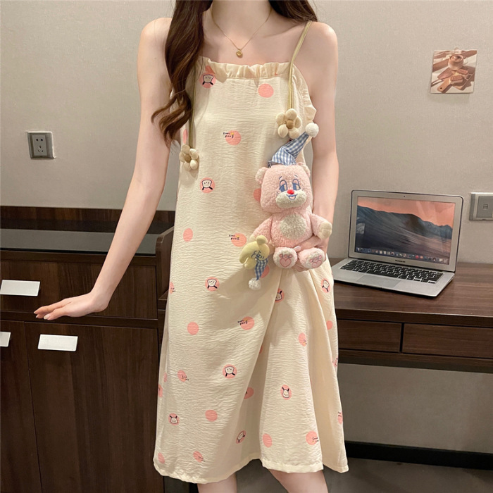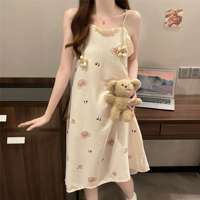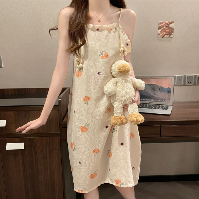 睡裙女夏季小花朵吊带云朵棉皱布甜美公主风夏天裙子睡衣女连衣裙