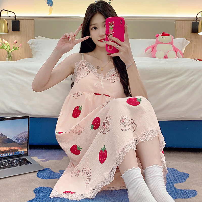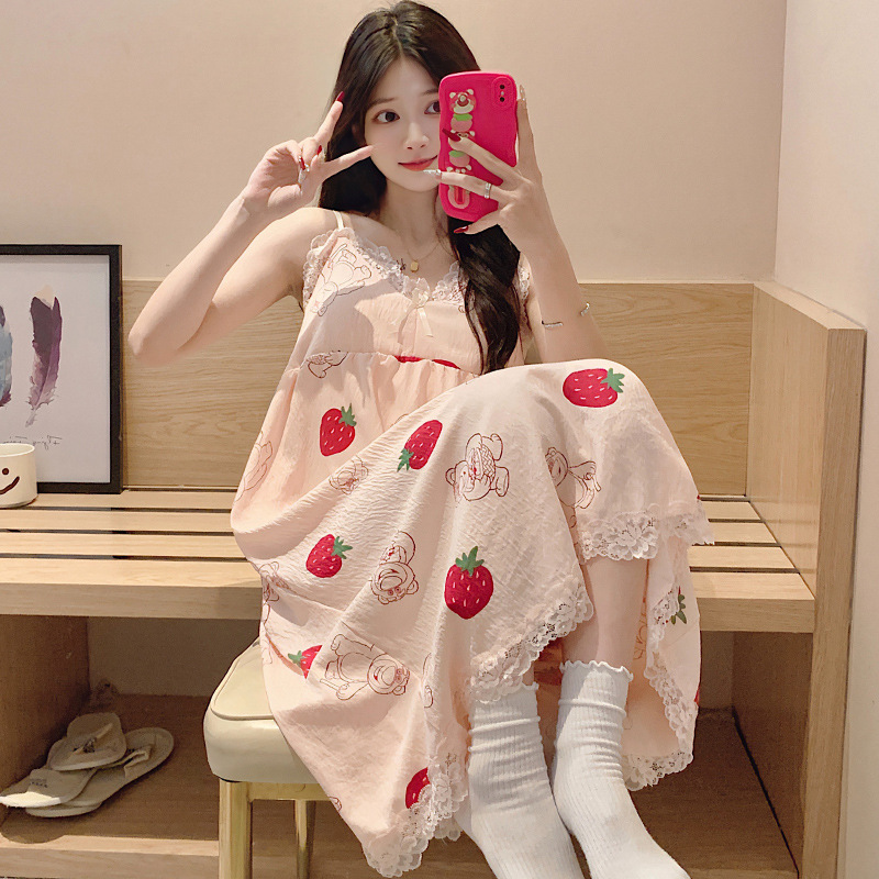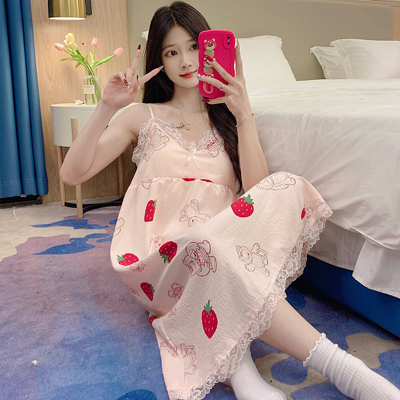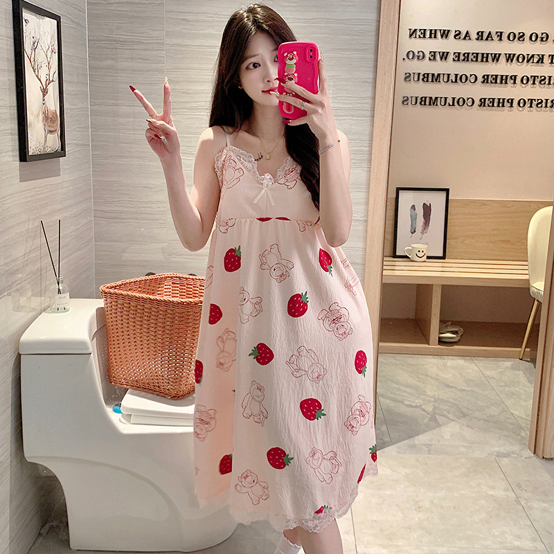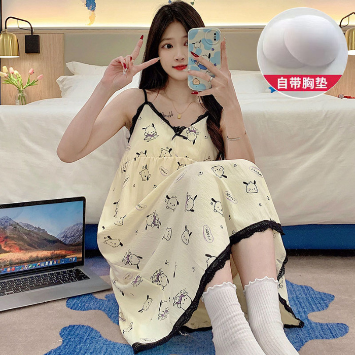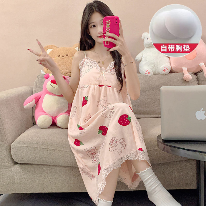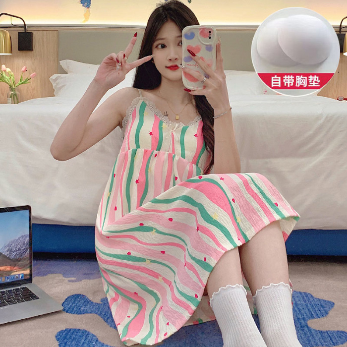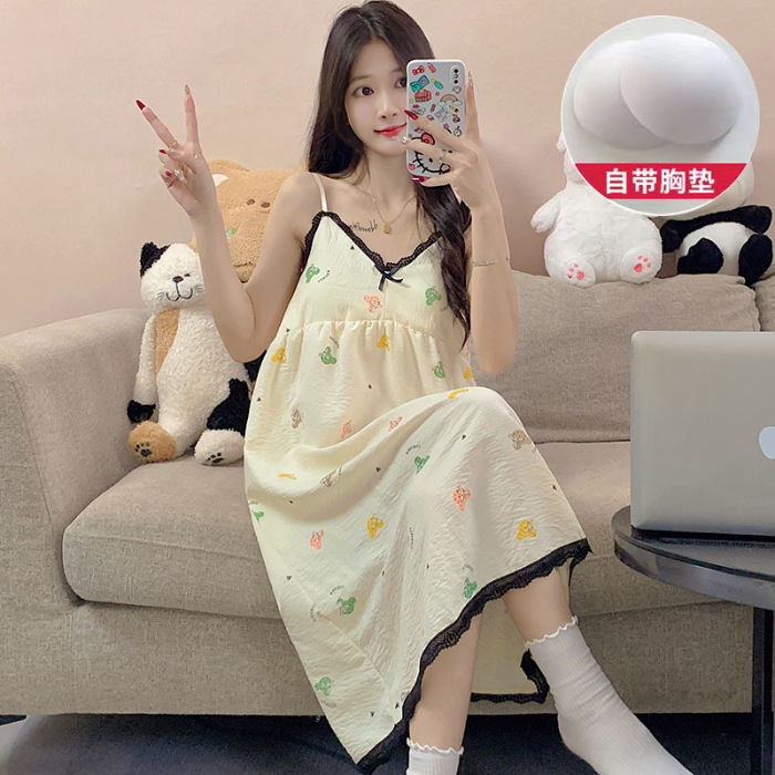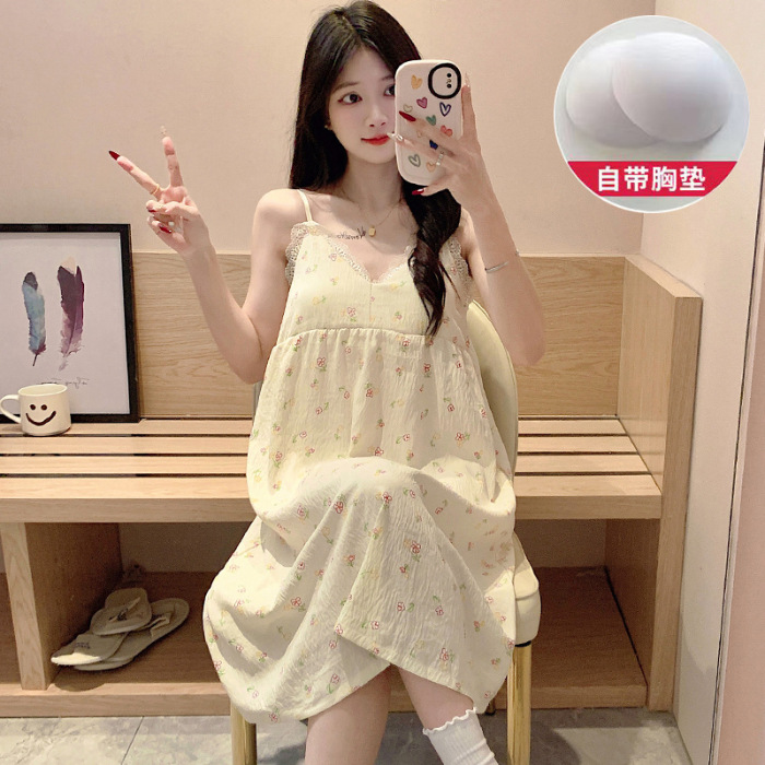 新品韩版夏季新款梭织云朵棉带胸垫睡裙女吊带可外穿家居服