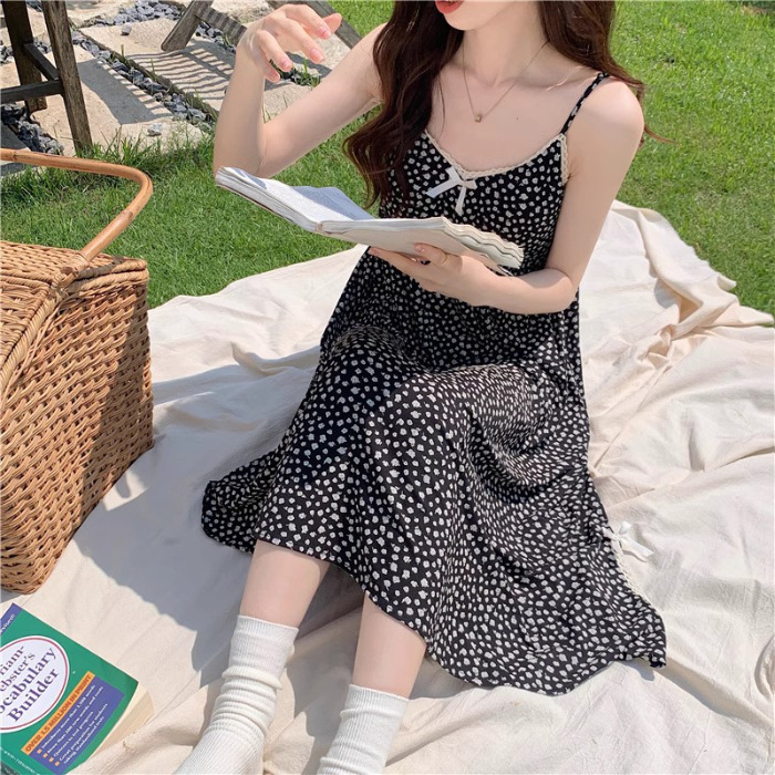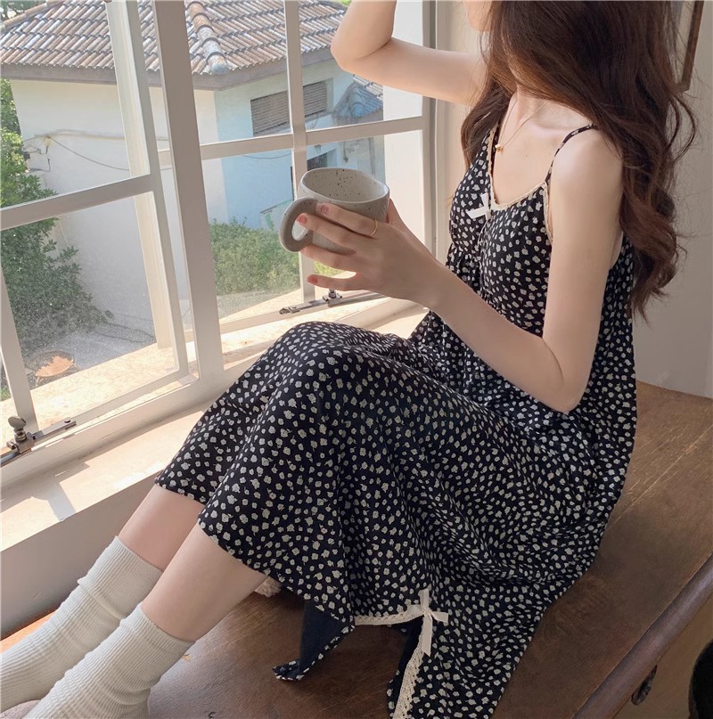 韩系ins风性感吊带睡裙女夏季薄款甜美碎花睡衣少女家居服连衣裙